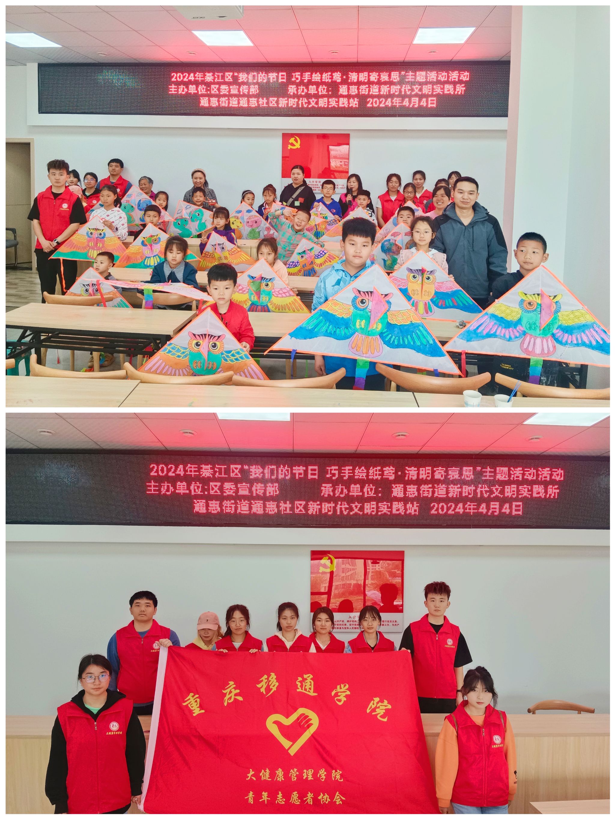 清明时节,万物复苏,春意盎然。绘纸鸢是清明时节的一种游艺活动,它寓含了人们对春天的喜悦和对美好生活的向往。在古代,放风筝不仅是为了娱乐,更是为了祈求放走晦气,消灾解难。因此,清明节绘纸鸢也寓意着祈求平安、健康,以及对未来美好生活的期许。为了传承和弘扬中华民族的传统文化,提高公众对传统节日的习俗的认识,大健康管理学院于2024年4月4日上午九点前往通惠社区组织了清明节绘纸鸢活动,在这个充满哀思与敬意的清明节,志愿者用实际行动诠释着奉献与爱心,为社区注入一份温暖的力量。