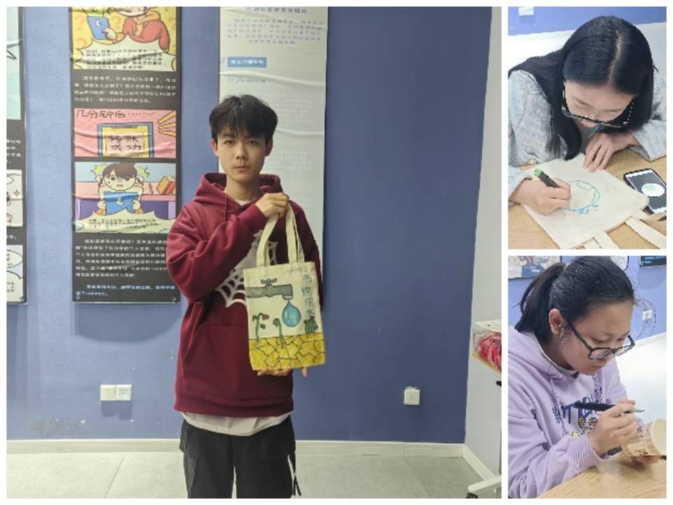活动开始,同学们会以两人为一组的方式,领取志愿者为他们准备的白色帆布袋,纸杯及其他工具,现场作画。“漾漾浮轻波,悠悠汇远浦。”同学们以心中所想,绘画山河。在过程中沉浸式体验,走入水的世界,感受水的清澈,透亮,灵动与柔美。这让同学们深刻的体会到水的重要性。自觉爱护水源,传承保护水资源的美德。让我们将灰色的水源绘画成一幅充满绚烂色彩的画卷。