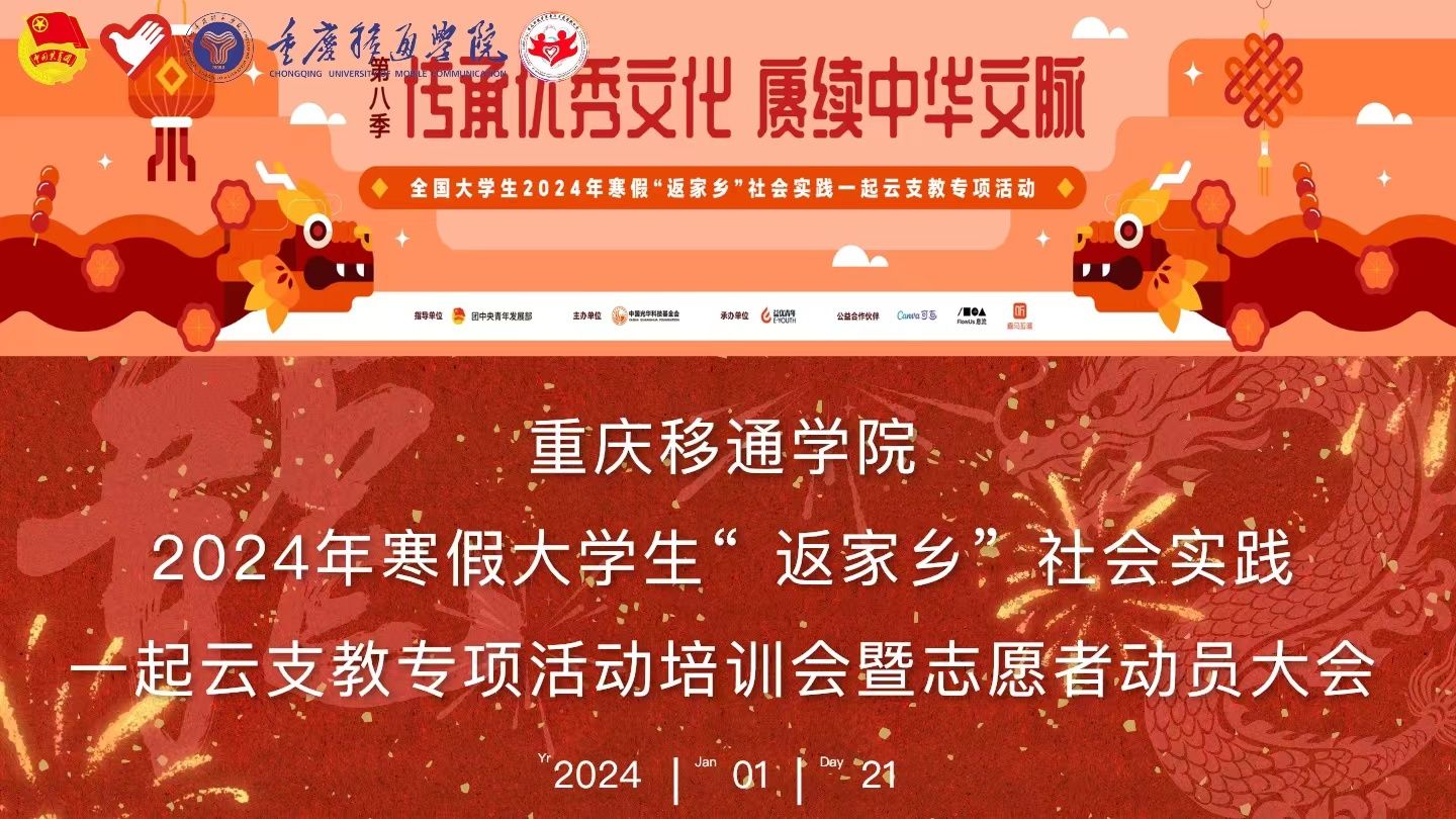 高举中国特色社会主义伟大旗帜,深入贯彻习近平总书记关于青年工作的指导思想,在重庆移通学院青年志愿者联合会的指导下,大健康管理学院于2024年1月25日召开2024年大健康管理学院云支教动员大会,本次会议由执行专员石莹主持。动员大会旨在让同学们进一步了解“云支教”的相关情况,并通过上期云支教志愿者来向新成员分享经验,为接下来的云支教工作的顺利开展奠定良好基础。
