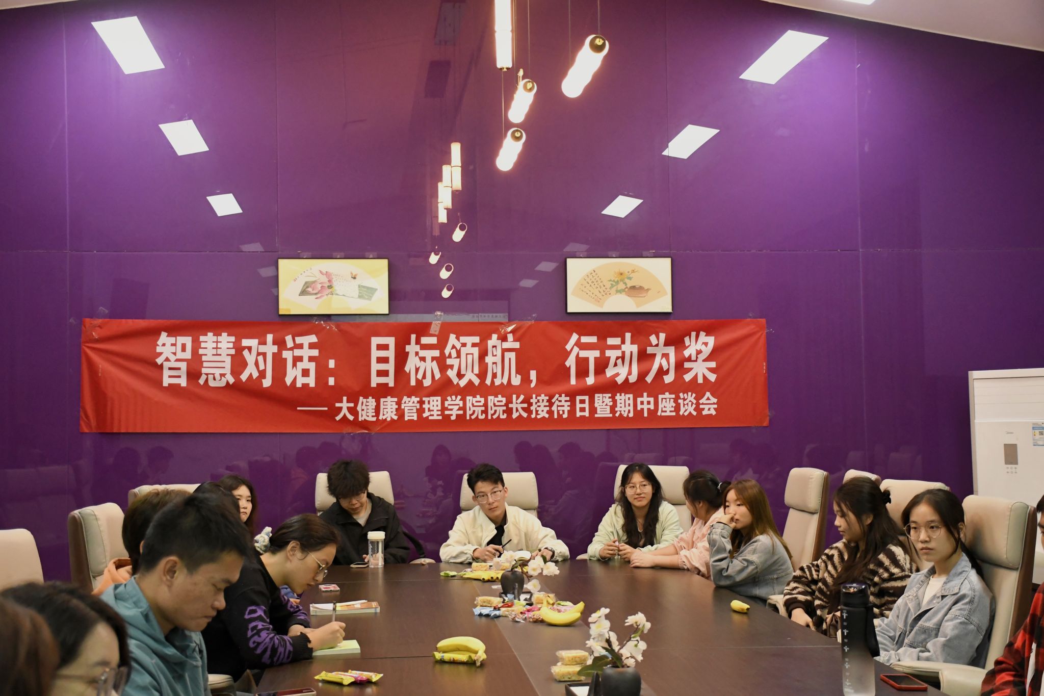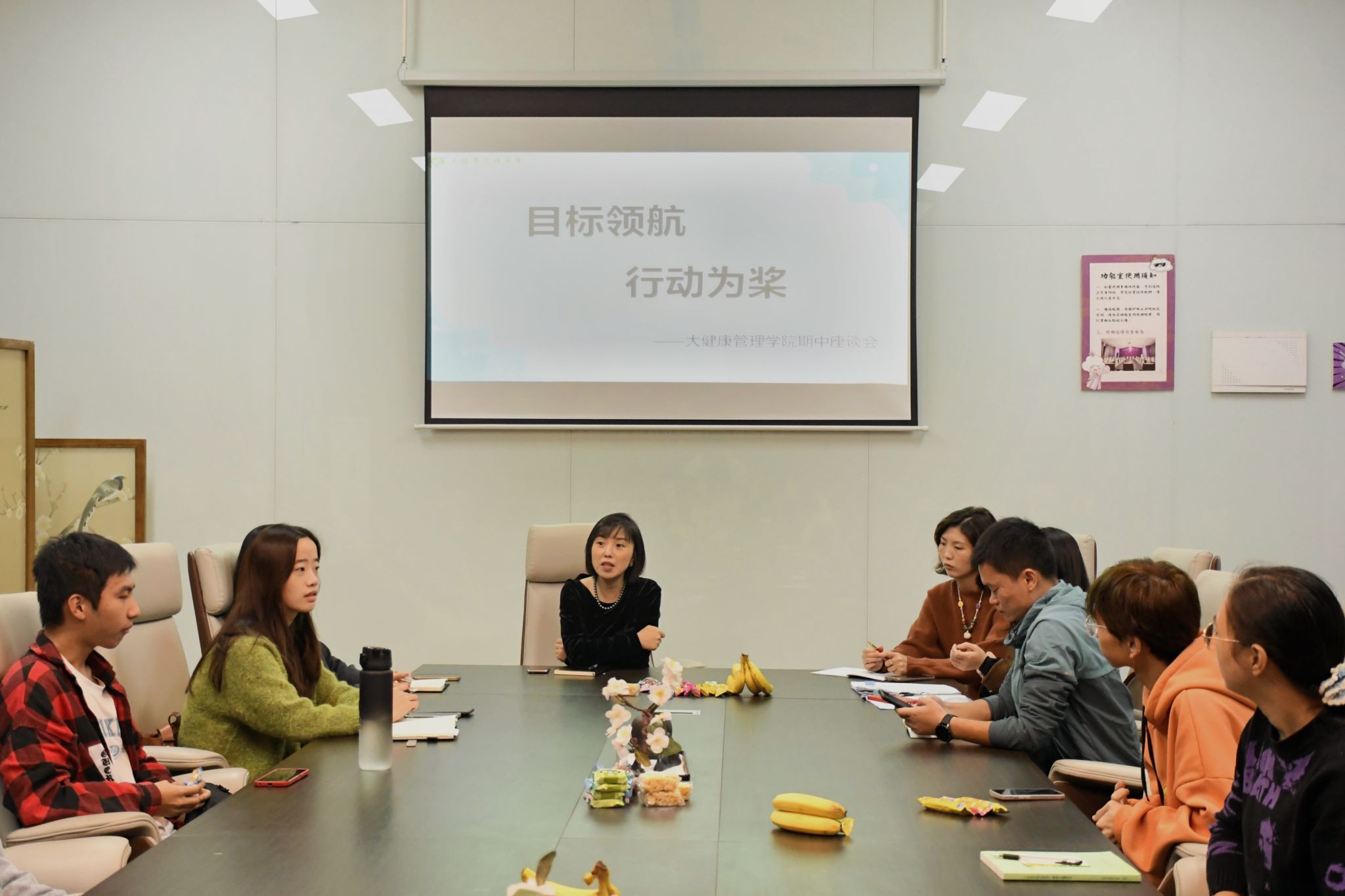 为进一步加强学院学风建设,切实解决师生学习工作中的问题,促进教学相长,共同推动学院发展,大健康管理学院于11月6日上午10时在观云书院小雪·会议室召开“智慧对话:目标领航,行动为桨——大健康管理学院院长接待日暨期中座谈会”活动。活动有幸邀请到杨瑜院长,院长助理彭丽珺老师、徐亚琼老师、任家兴老师、朱洋老师、李一洁老师和部分同学代表共同参加。
