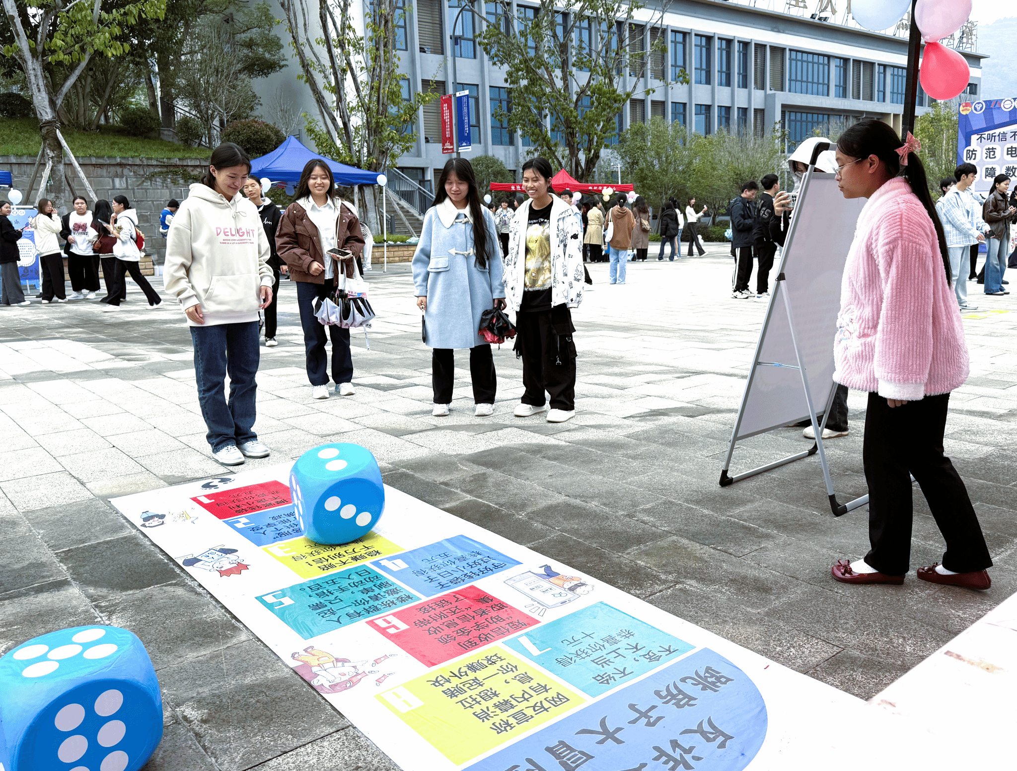 随着活动的展开,同学们积极地参与了趣味开盲盒、幸运小转盘、猜猜乐等小游戏,和关于反诈、消费者权益、法律的知识问答等的知识大冲关。随着镜头的聚焦,一张张写满防诈顺口溜的小纸条在盲盒中被抽出;一颗颗骰子在地上来回滚动;一个个防诈难题被自信解答;一根根手指随着音乐中灵活舞动......欢声笑语中,同学们的维权意识和反诈能力在不断地增强。