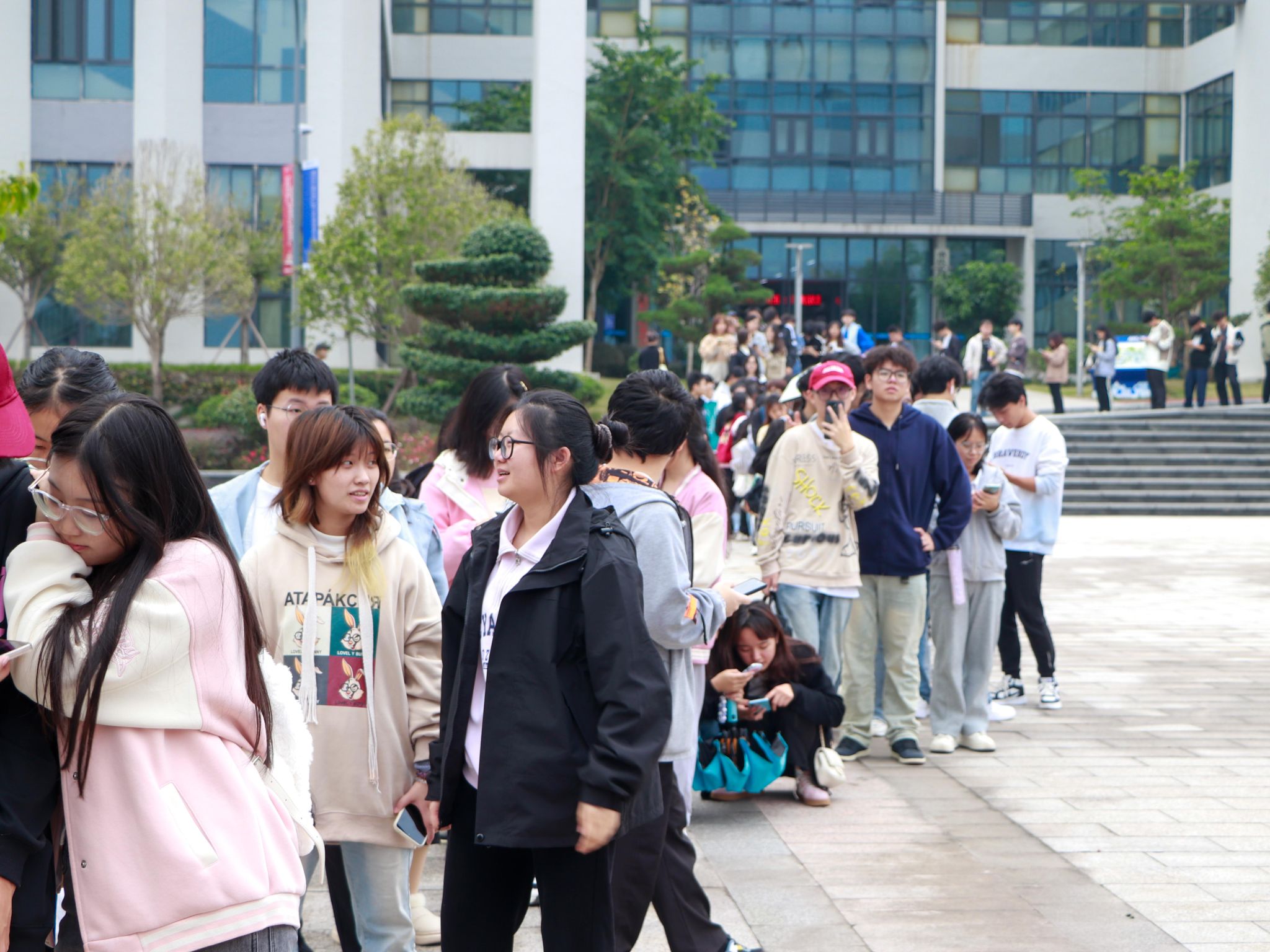 在瀛山图书馆前广场,一场结合“潮流文化”“宣教互促”“游戏互动”“反诈手势舞教学”等元素的反诈集市活动吸引了众多学生参与。通过创新“集市+反诈”的工作模式,全方位、多角度开展预防网络诈骗宣传工作。随着吉祥物的闪亮登场,活动被拉开序幕,在工作人员的引导下同学们有序的签下反诈承诺书并分享到朋友圈进行签到。