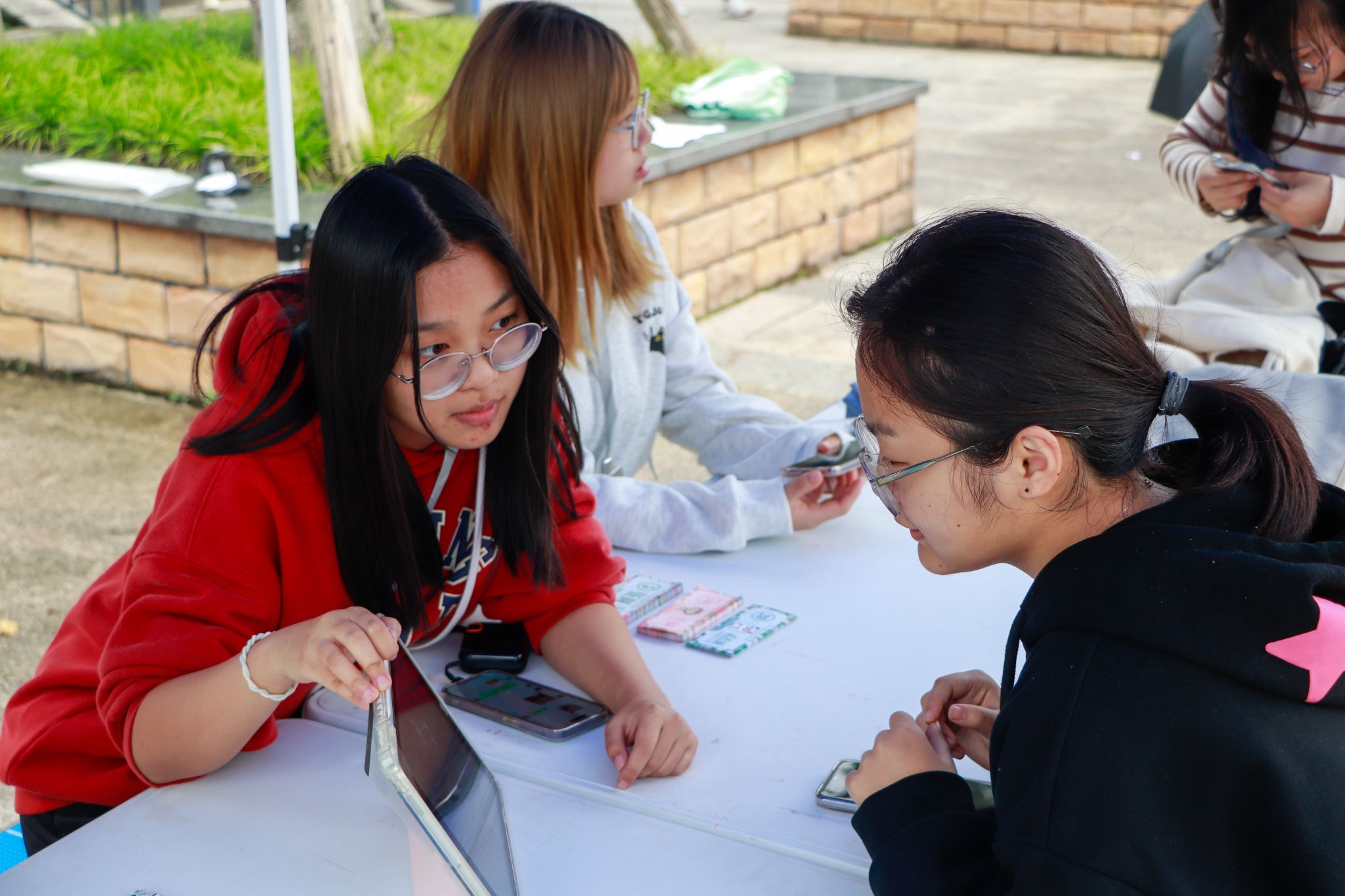 在活动的最后,越来越多的游戏币在同学们的手中积累。成功集齐60枚游戏币的同学们依次来到签退处,待工作人员清点完游戏币数量,各自选取了自己心仪的小奖品后满意签退离开。
