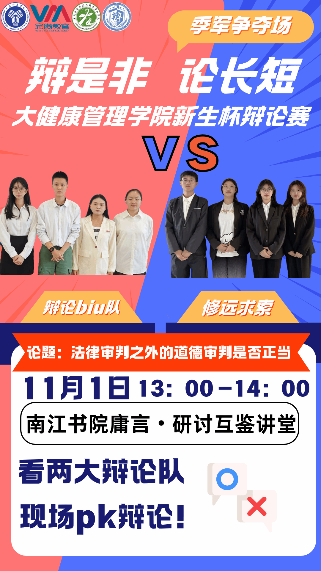 让我们共同希冀与期待2024年11月1日大健康管理学院“辩是非,论长短”新生杯辩论赛决赛