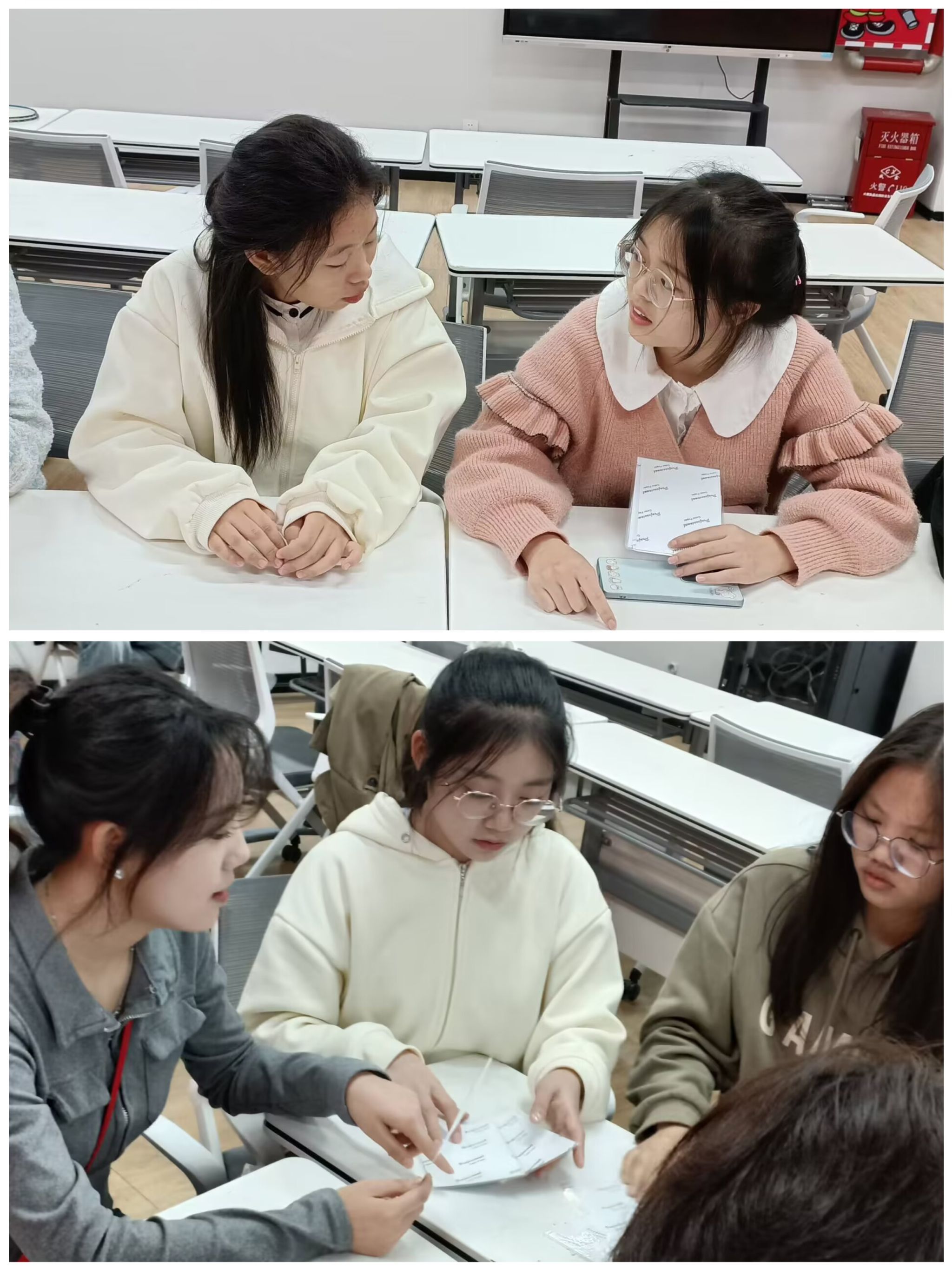 寒冷的冬天来临之际,大健康管理学院的活动却热烈开展着,同学们积极主动的在活动中展现出了他们的创新思维和团队协作能力,同学们在这一活动中,不仅要思考自己如何将自己手中的卡片描述给小组其他成员听,让小组其他成员能想象出自己手中卡片的内容,还要认真倾听小组其他成员所描述的卡片内容,尽量幻想出成员手里卡片的内容,小组成员再一起猜测,一起推理,这个过程不会一帆风顺,会遇到瓶颈,需要小组成员一起努力,不断地沟通交流自己手中卡片的重要信息,卡片里的细小内容就是决定能否挑战成功的关键,是小组成员不容忽视的,不断地倾听小组成员的诉说,不断地与小组成员沟通交流。每一分每一秒,他们都全神贯注,看着他们认真的样子,觉得无比的可爱,他们充分发挥着自己的想象力和创造力,在活动中学会了关注他人,适当停下自己的输出而去聆听他人的言语。