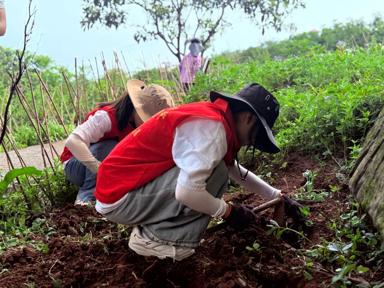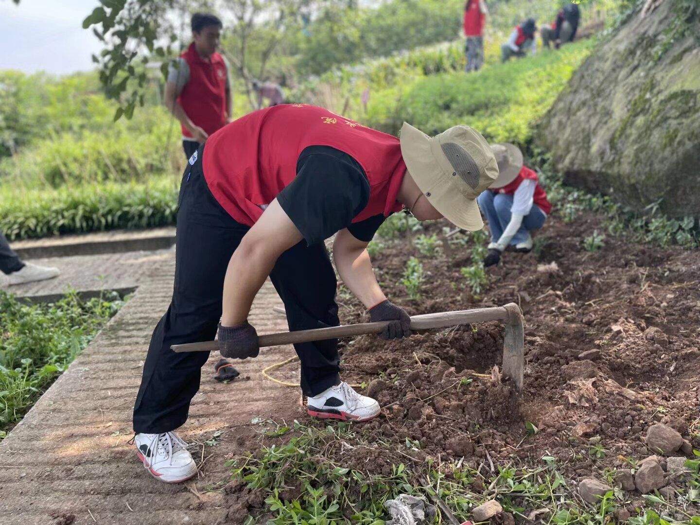 上午,团队成员手持工具,走进艾草种植园区开展艾草种植,翻土、挖坑,移栽艾草幼苗,尽管烈日炎炎,汗水浸湿了衣衫,但成员们热情不减,干劲十足。