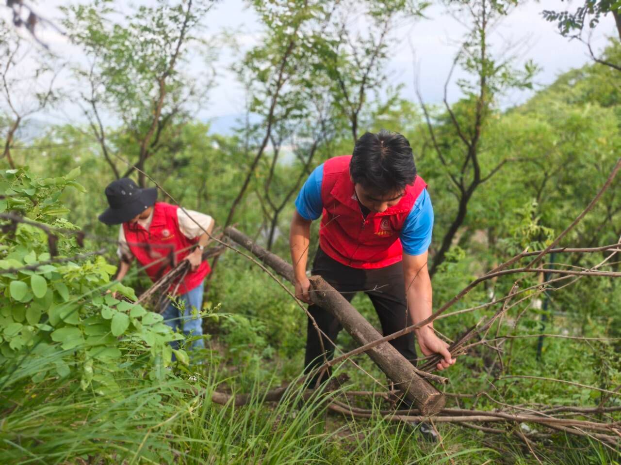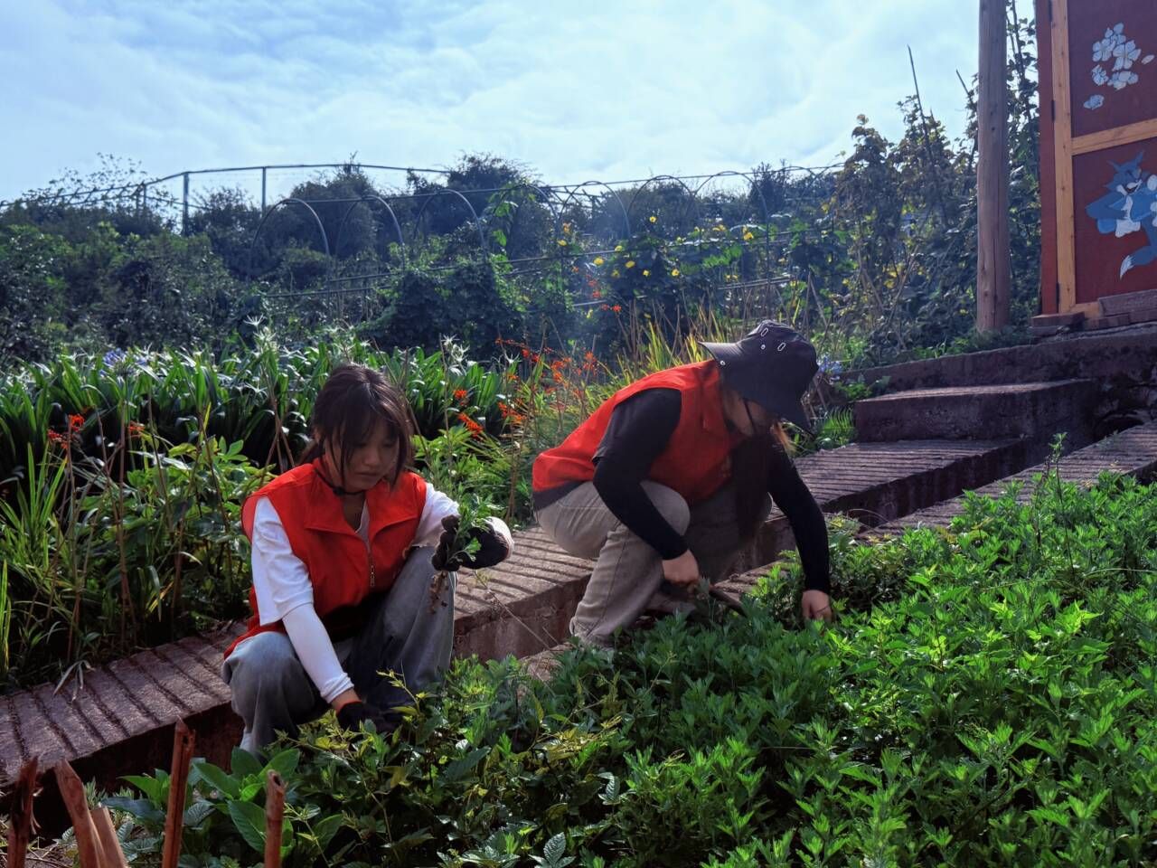 农户帮扶组来到户外帮助空巢老人拾柴火、捡鸡蛋,他们积极投身劳动,传递青春志愿力量。