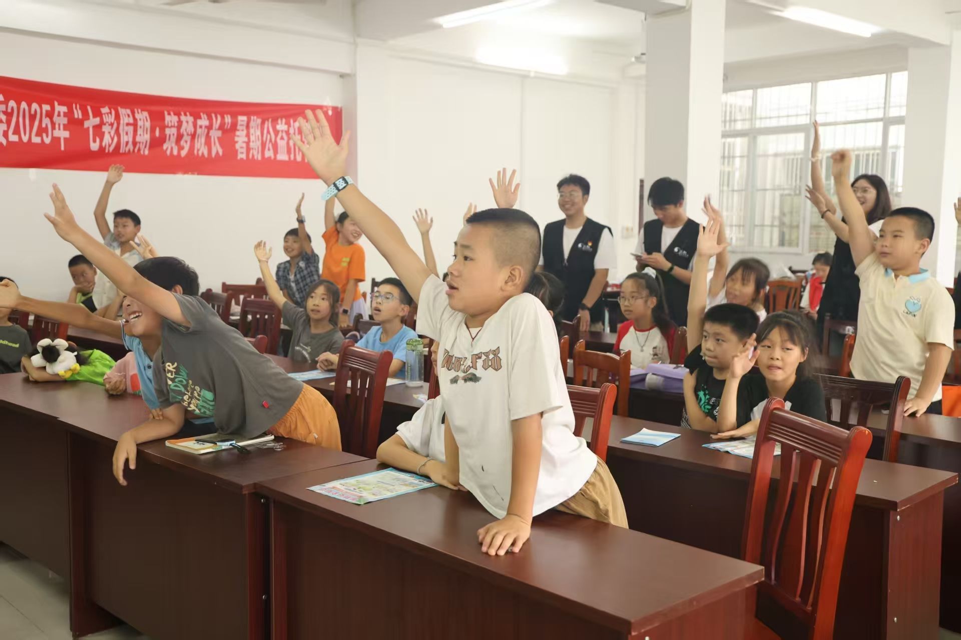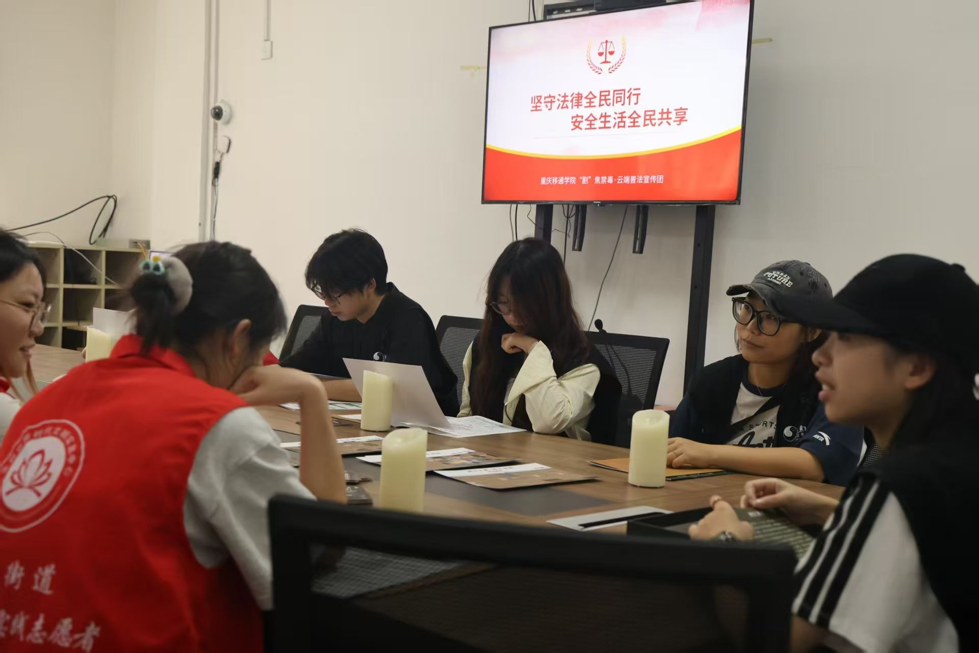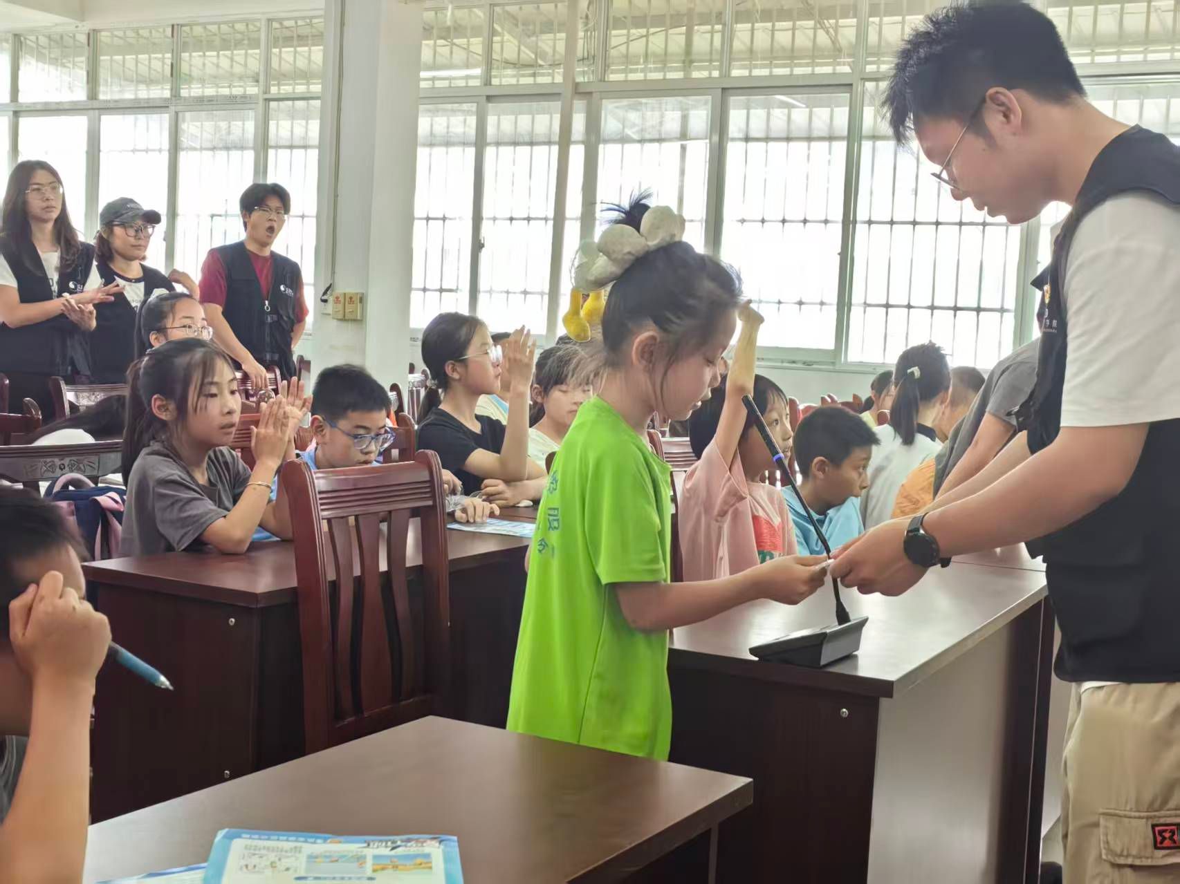 在居委会活动室内,志愿者与托管班的志愿者共同参与了一场以普及法律知识为核心内容的剧本杀活动。这种全新的寓教于乐的形式,将原本显得远离生活、僵硬刻板的法律条文融入到生动的剧情推理中,引发了队员和志愿者们的深刻思考,将尊法、知法、守法的思想理念深深根植在人们心中。