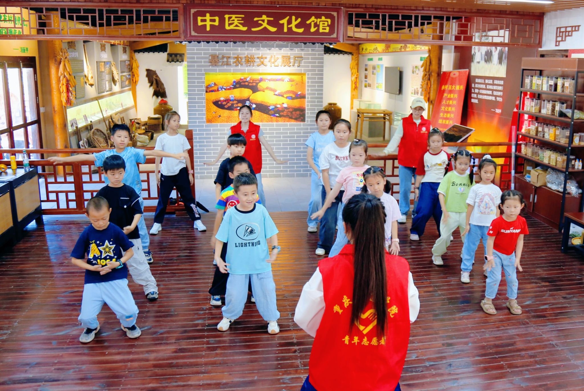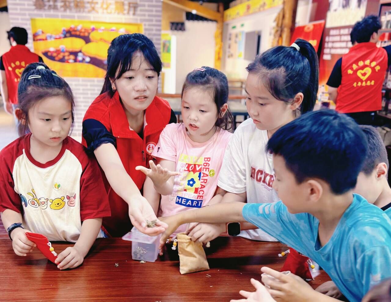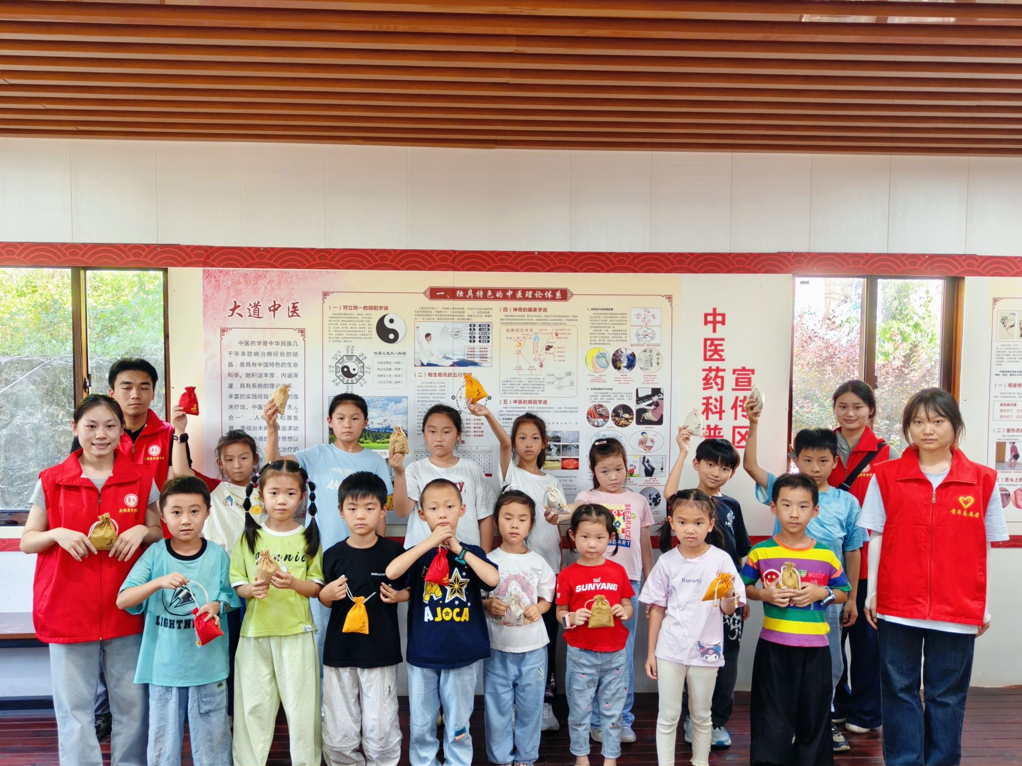 在连城村农耕博物馆,团队成员带着儿童开展中药香囊制作、八段锦教学等中医体验活动。同时,美育志愿者则利用彩色粘土教儿童制作艺术作品。