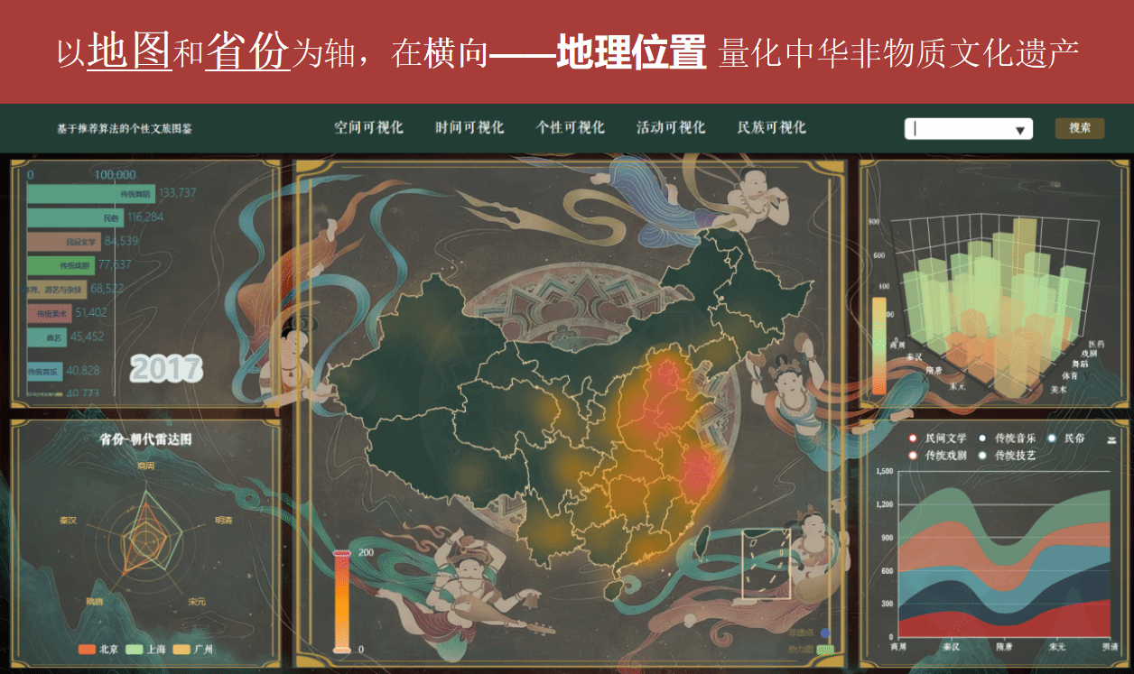 为扩大东溪非遗文化的影响力,团队成员利用专业所长,搭建了一个非遗可视化网页。