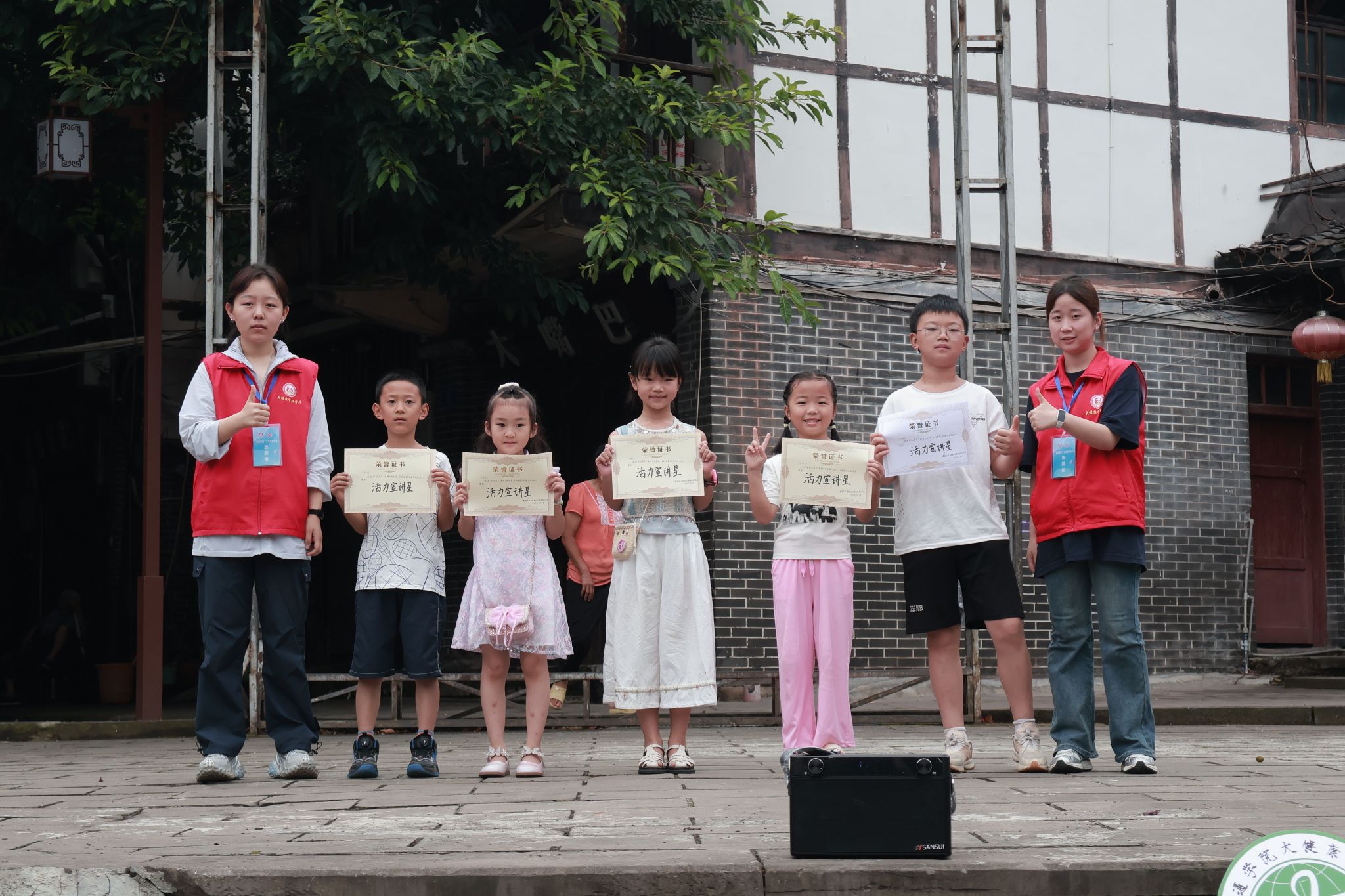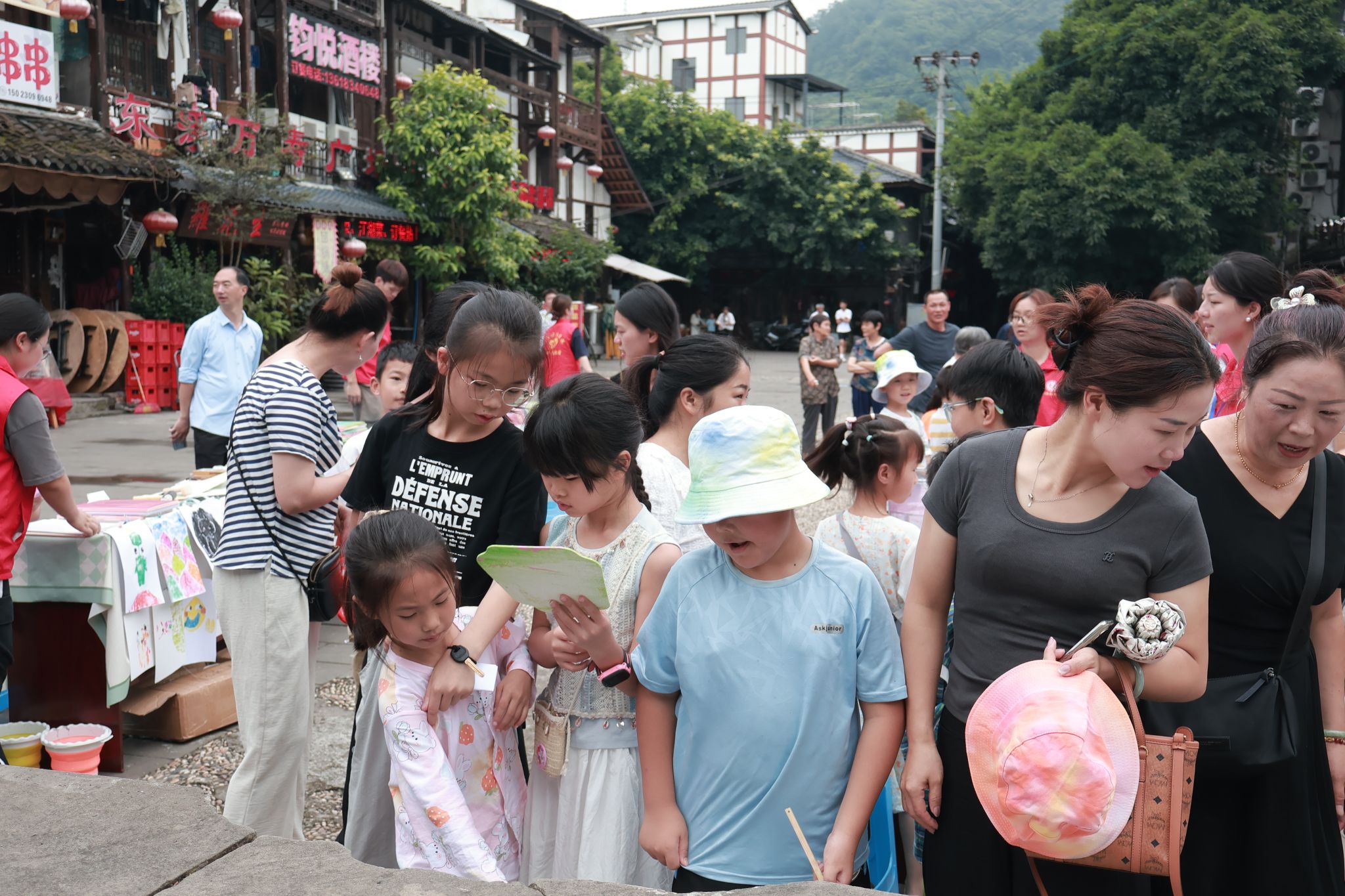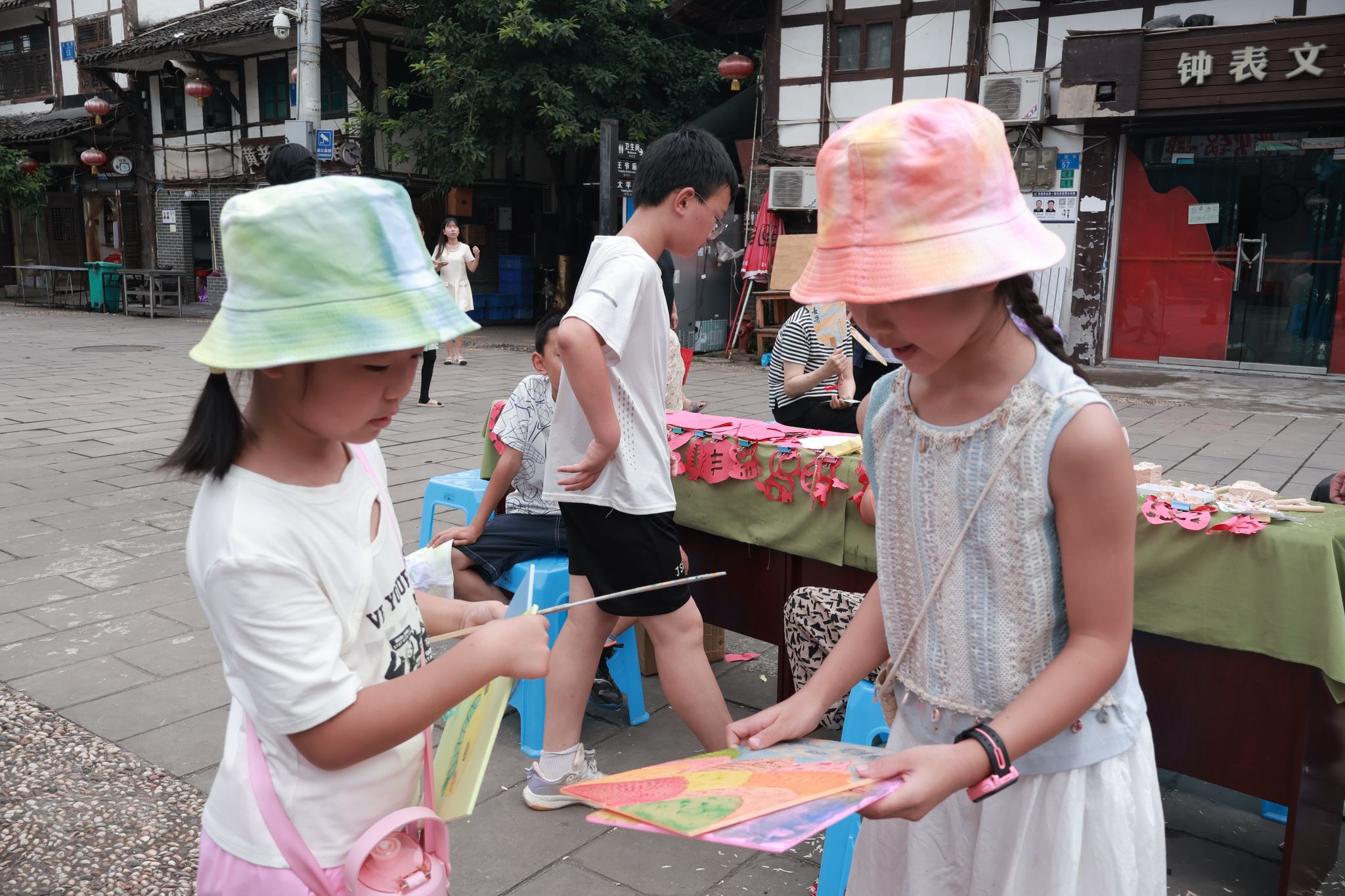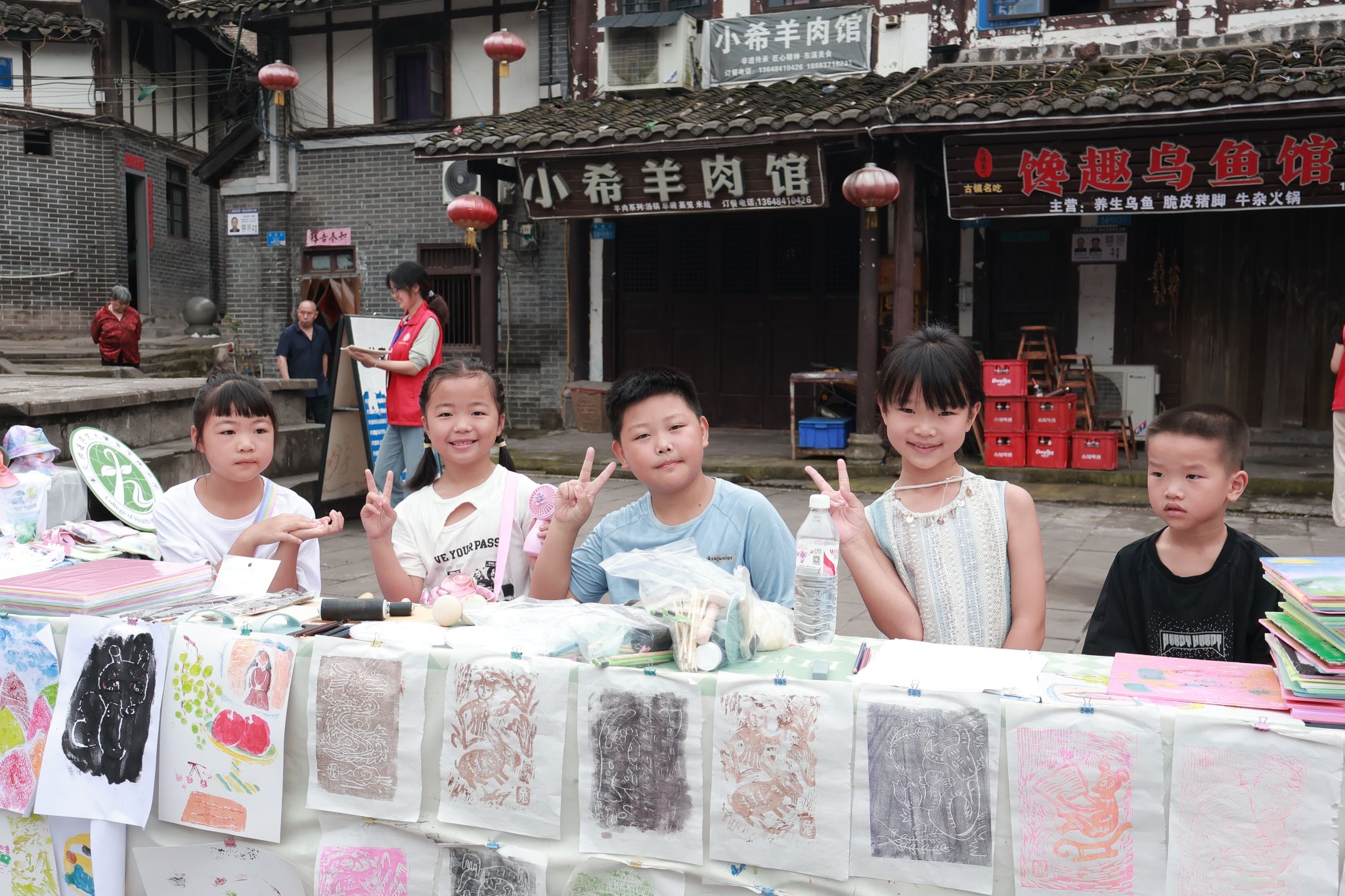 夏日的东溪古镇,青石板路映着暖阳,非遗文化的馨香与孩童的欢语交织成动人的乐章。7月7日上午,“东溪艺术日”正在古镇上演。在重庆移通学院“童眸中的东溪”乡村美育与非遗传承实践团精心搭建的平台上,孩子们化身“小小讲解员”和“非遗小匠人”,为市民游客奏响了一曲美育传承的动人新乐章。