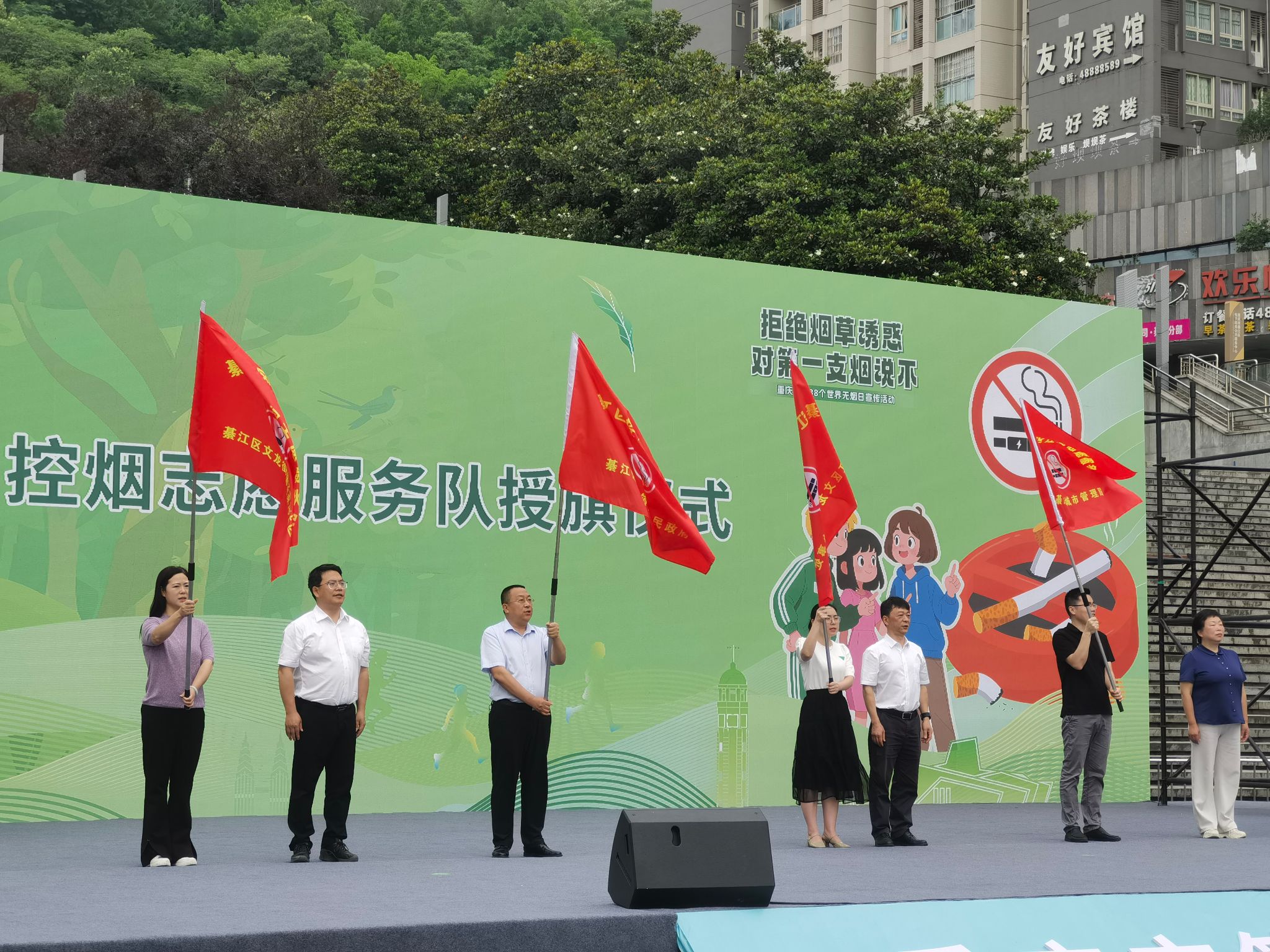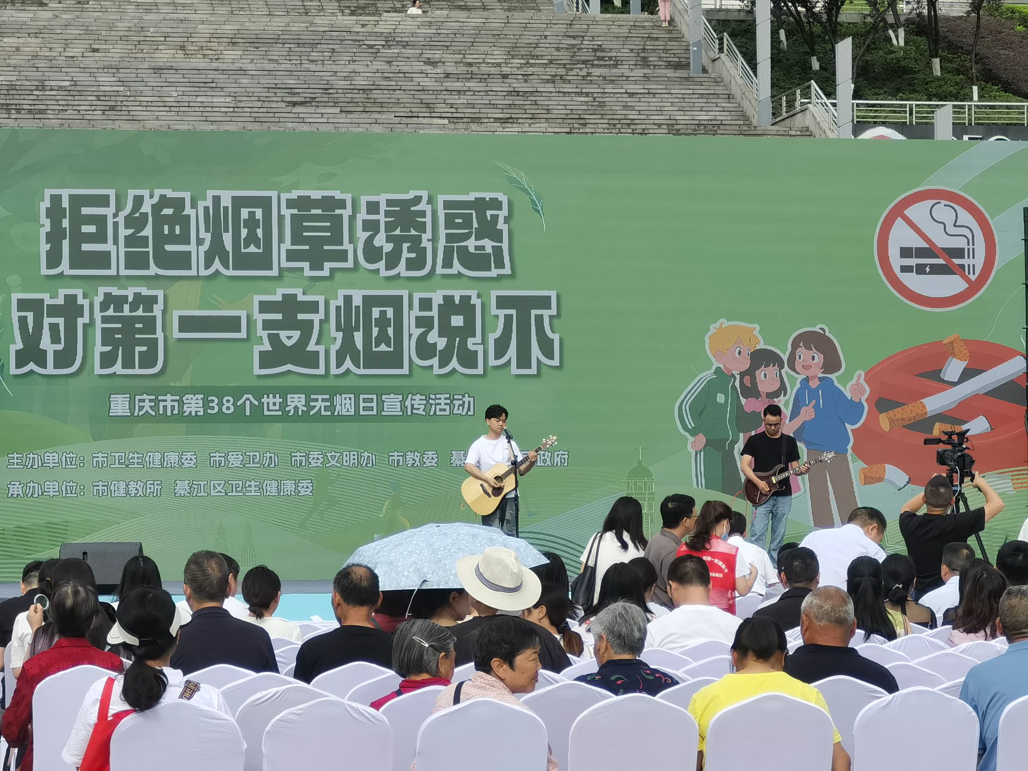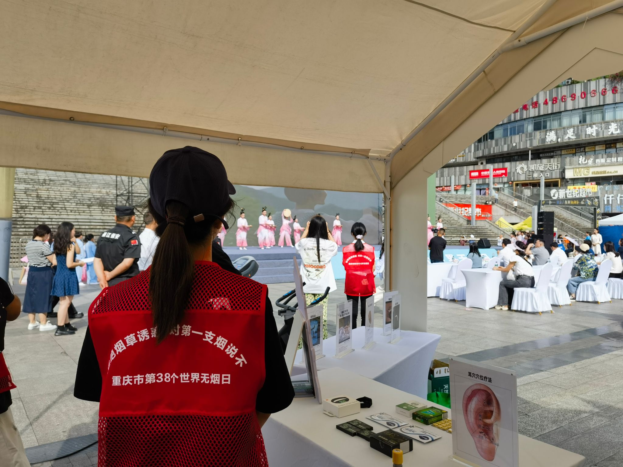 2025年5月30日上午,重庆市第38个“世界无烟日”集中宣传活动在綦江区营盘山广场隆重举行。大健康管理学院积极响应綦江区中医院邀请,组织养老服务管理专业和体育经济与管理专业的10名优秀学子组成志愿者服务队,深度参与活动后勤保障与“健康集市”特色展区服务,以专业素养和青春热情为控烟行动注入新活力。