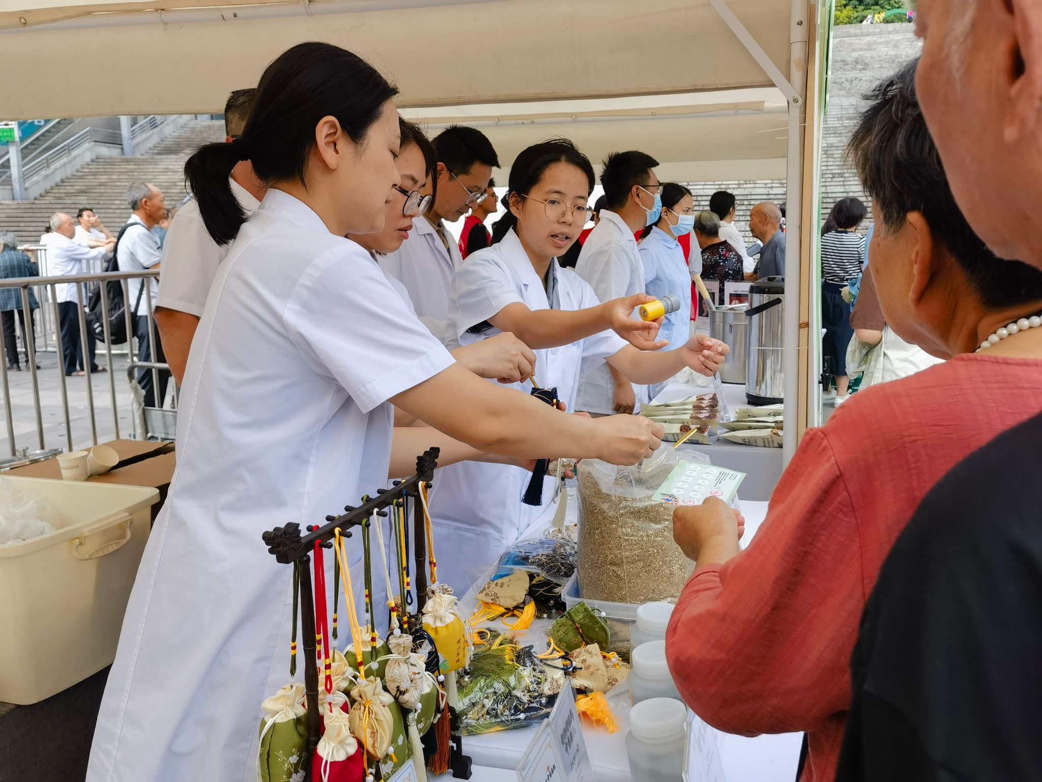 中医药器具与中药铺文化体验区:生动陈列中医药材、香囊、中药枕头等特色产品,向市民普及中医药在健康维护中的应用。