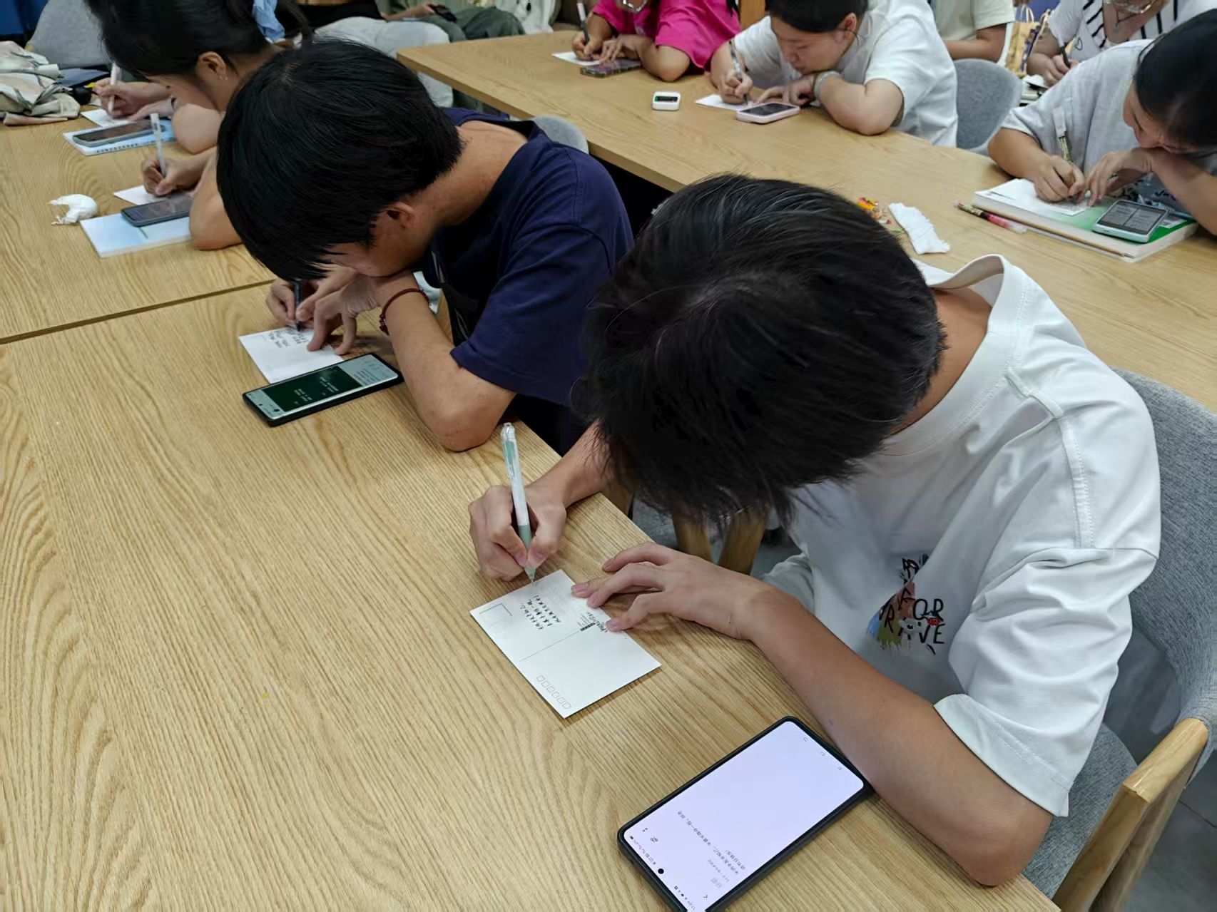 活动最后,同学们一笔一划写下对老师的感恩与祝福。一张张承载着心意的明信片将祝福传递到了老师手中,成为这个教师节最珍贵的礼物。本次活动通过寓教于乐的方式,让尊师、爱师、感恩的情感深入人心。