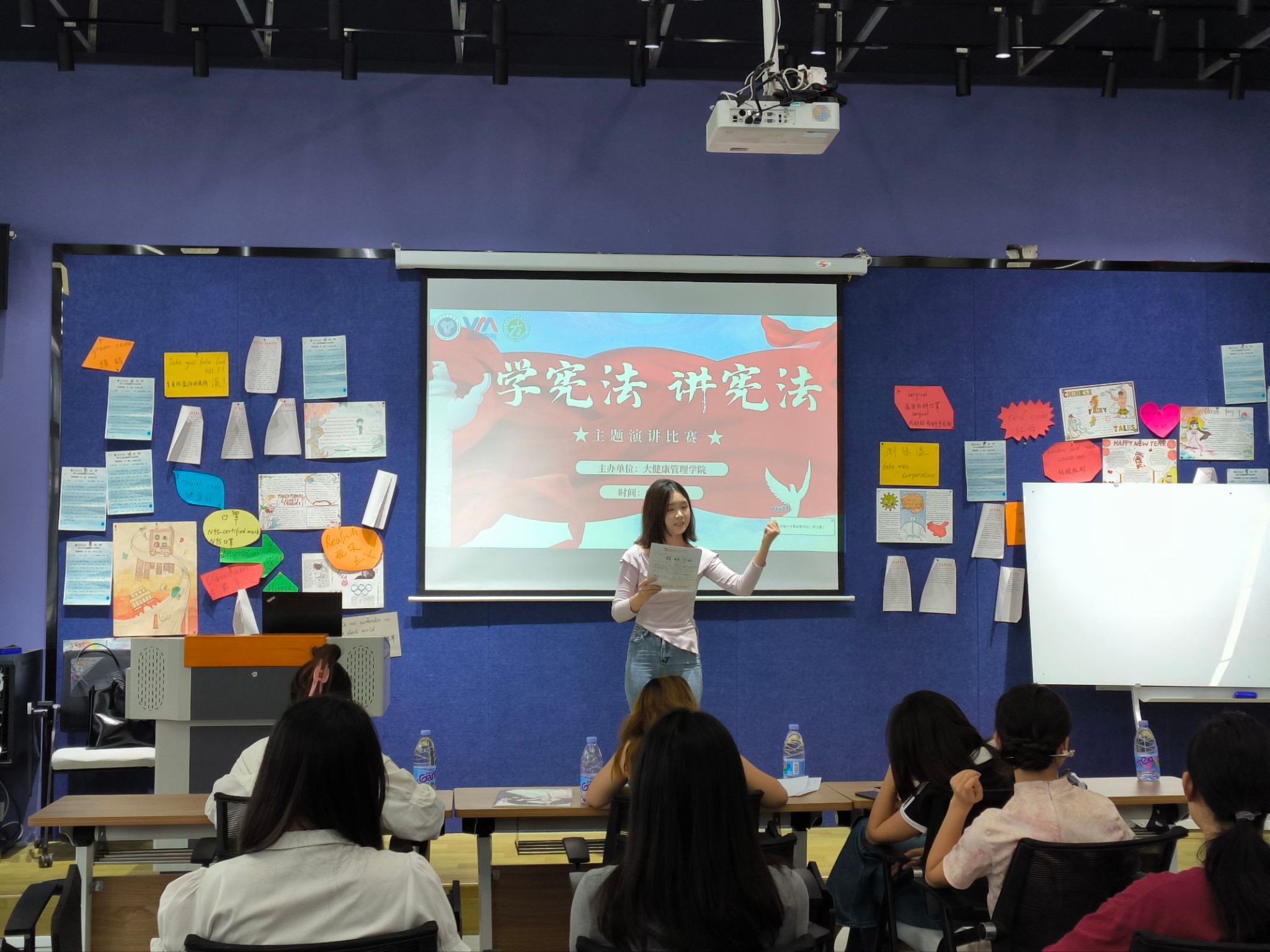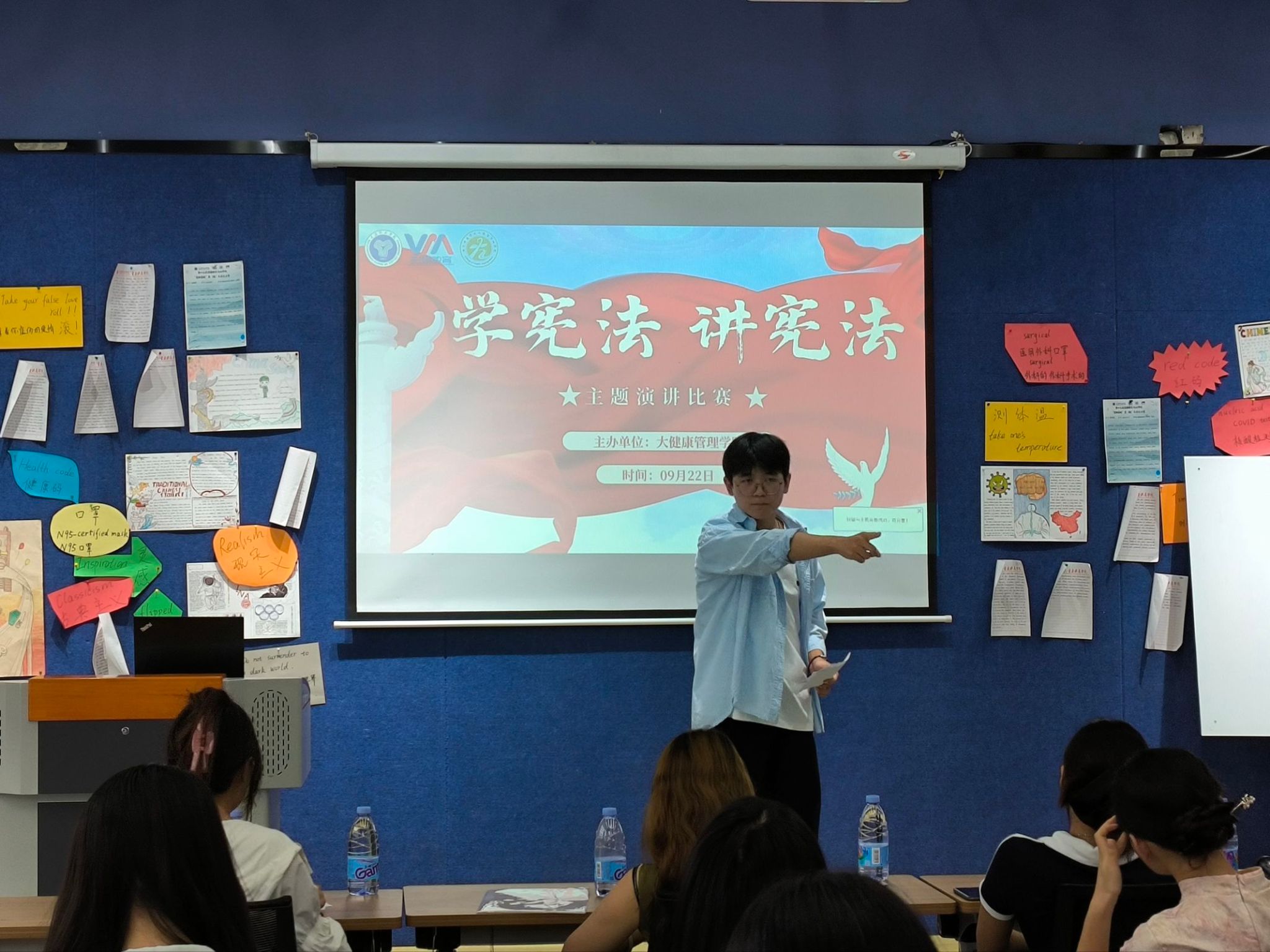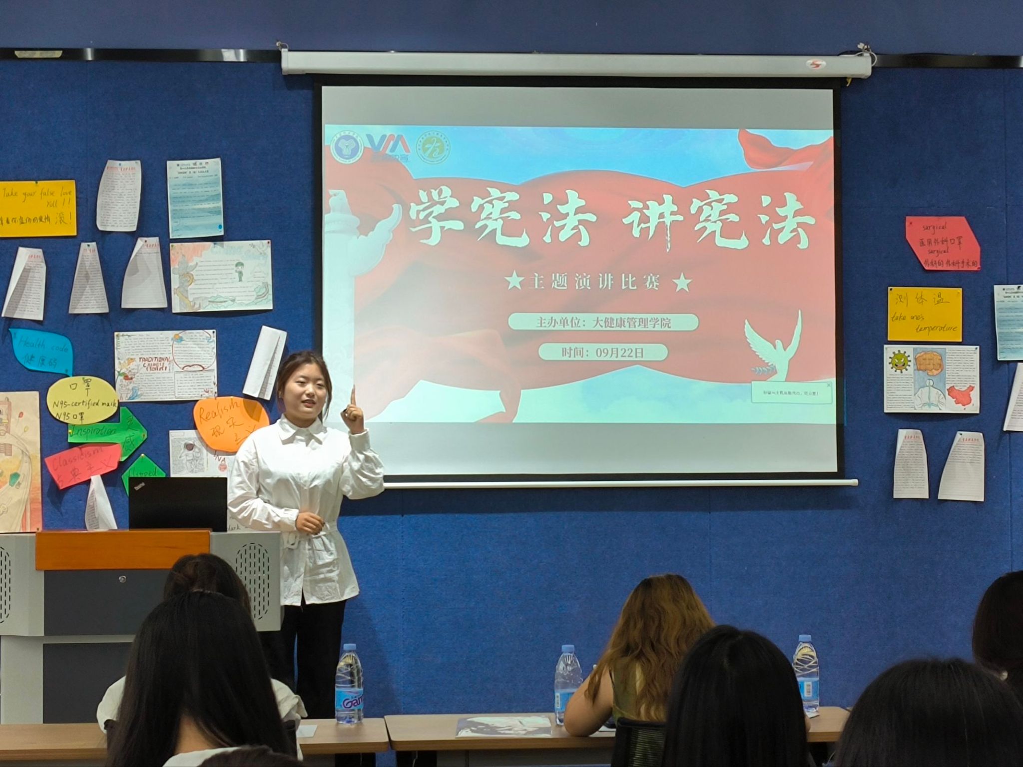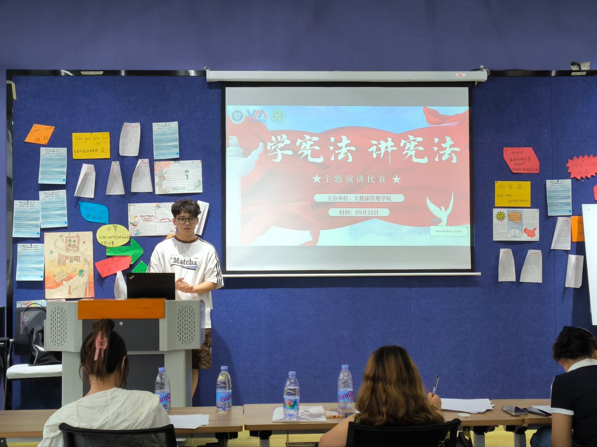 为深入学习、宣传宪法精神,增强全体师生的法治意识与公民责任感,9月22日,大健康管理学院于綦河书院两句·演讲培训室成功举办“学宪法 讲宪法”主题演讲比赛。本次演讲比赛特别邀请到了大健康管理学院辅导员老师担任评委。