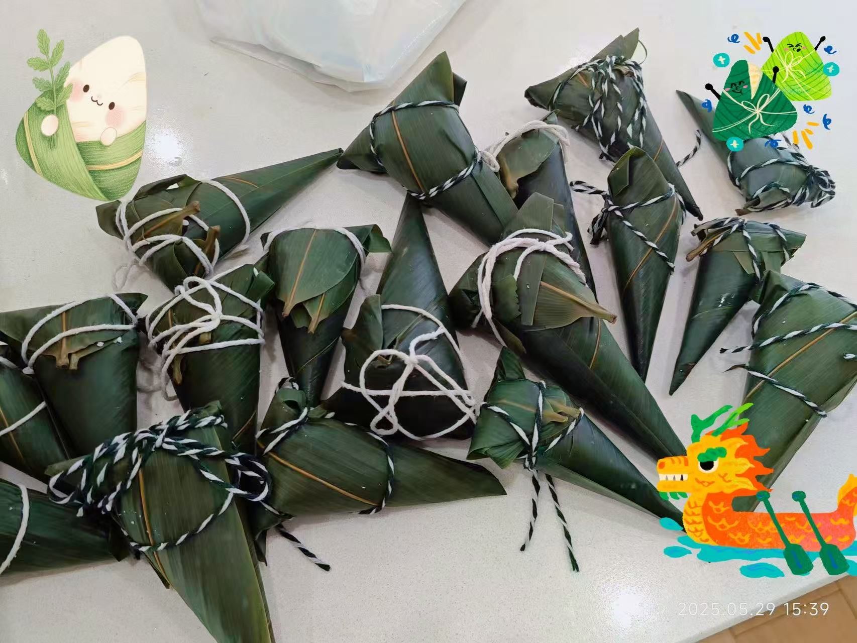 粽子蒸好后,同学们挑出最漂亮的抱去办公室。老师们接过热乎粽子直夸“手艺真棒”,办公室里飘着粽香,大家有说有笑,这粽子里包的可不只是糯米,还有咱对老师的心意呀~此次端午活动虽已落幕,但它在同学们心中种下了情谊与文化的种子。未来的日子里,大家将带着这份在端午相聚时收获的温暖与力量继续前行。无论是在知识的海洋里探索,还是在生活的道路上跋涉,这段共同包粽、共享欢乐的经历,都将化作彼此心灵深处的慰藉,让师生情谊、同窗友谊如陈酿的美酒,在岁月中愈发醇厚绵延。