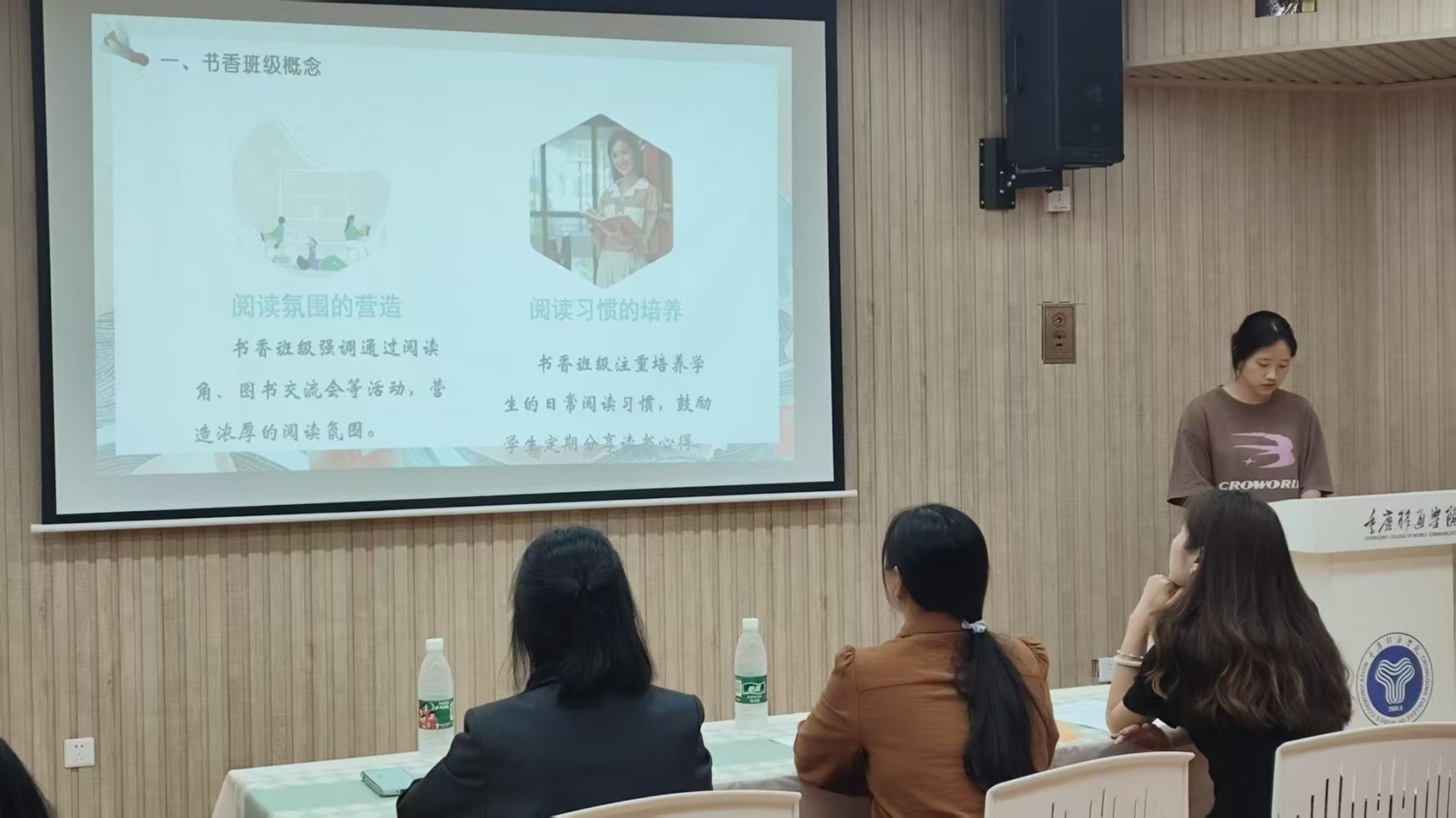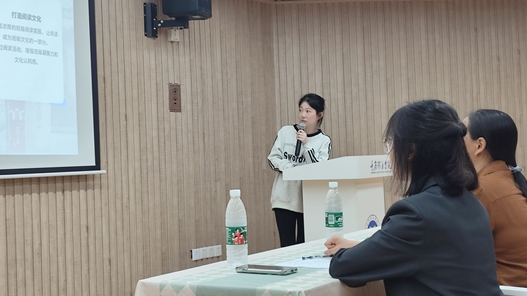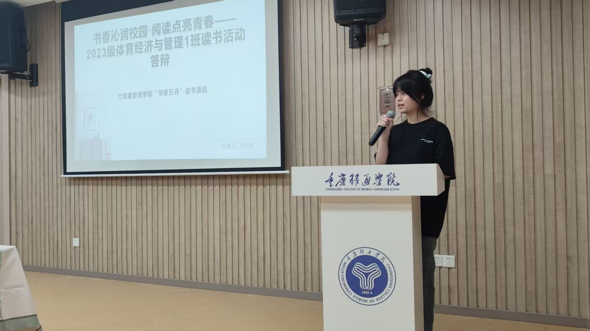 5月28日的线下答辩,邀请马克思主义学院潘家玲老师、徐玲老师以及图书馆刘文文老师组成评委团。现场智慧交锋、风采竞逐,各班代表妙语连珠、自信昂扬。2023级健康服务与管理1班以“阅读赋能专业成长”为轴,系统铺展班级阅读图谱;2024级体育经济与管理1班别出心裁,生动诠释阅读对实践的引领价值。最后,徐玲老师从情感表达、现场呈现、内容创作等维度进行点评,对于答辩班级给予了高度肯定,并称赞以“书卷气”涵养“精神气”,充分体现了大家在书香浸润中的思想深度与艺术创造力。每一次真诚分享都是心与心的共振,每一次思想碰撞都汇聚为成长的力量。