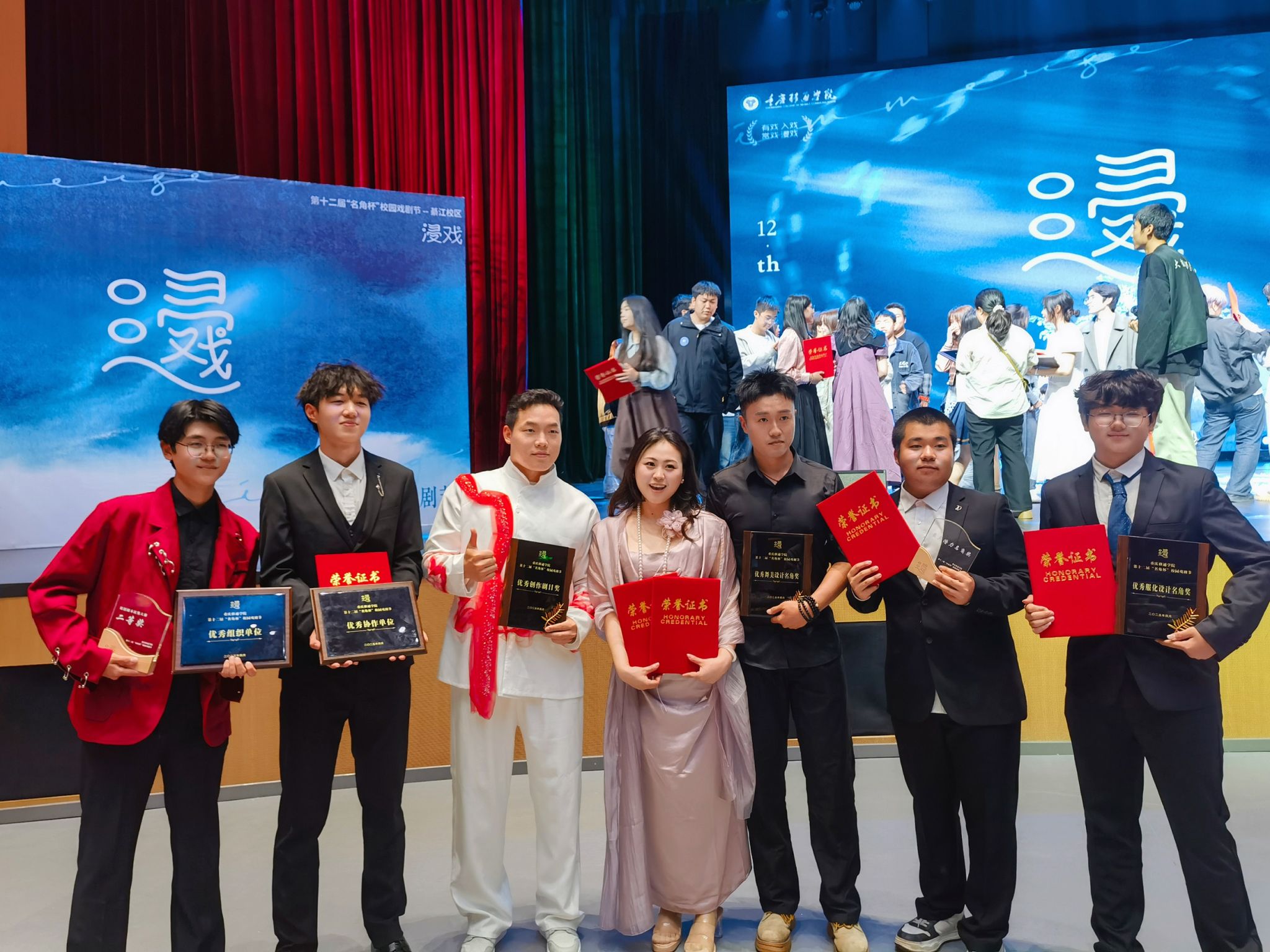 本届戏剧节中,学院原创谍战话剧《谍海沉浮》包揽四项专业大奖:“优秀创作剧目奖”见证剧本深度,“优秀音效设计名角奖”诠释听觉艺术,“优秀服化设计名角奖”雕琢时代质感,“优秀舞美设计名角奖”重构空间美学。剧中佐藤饰演者蒋中鑫凭借层次分明的表演摘得“最具潜力名角奖”。在剧本创作领域,刘怡铭同学《暗涌》以精巧叙事斩获原创剧本征集大赛二等奖。尤为瞩目的是戏剧影视妆造大赛中,向念、张露、林小嫚、杨柳依依、张蔓等学子横扫十项大奖,以专业技艺包揽冠亚季军及创意奖项,凯迪日耶·阿力木江、李修平、李潞等同学更以独特台风折服评委。