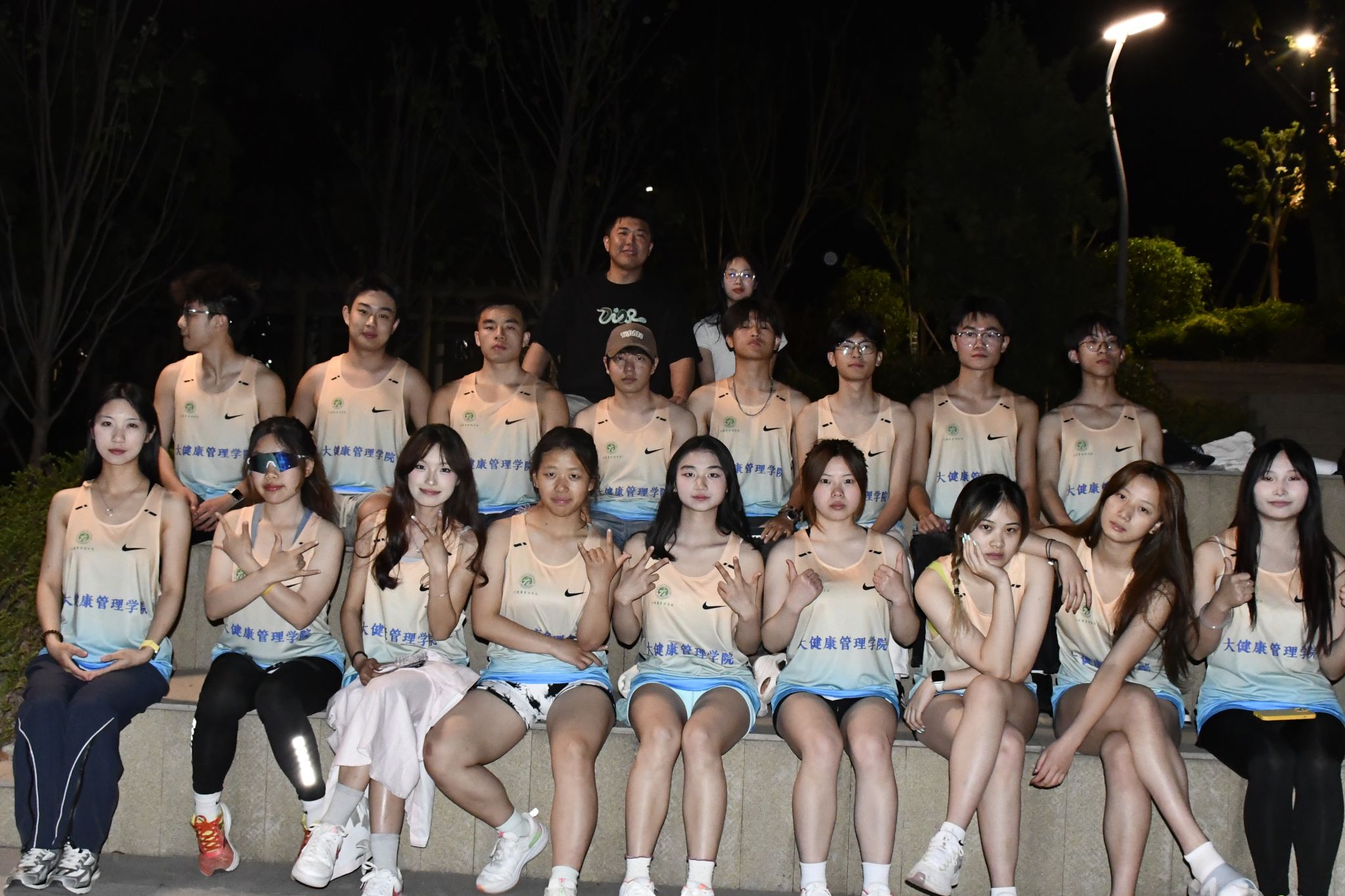 大会尾声,全体运动员与参会老师合影留念,灿烂的笑容、坚定的眼神,无不彰显着健管er蓬勃向上的精神风貌,随着快门声响起,这激动人心的时刻永远被定格。愿各位运动健儿们能够凯旋归来,为大健康管理学院增添新的一道色彩!
