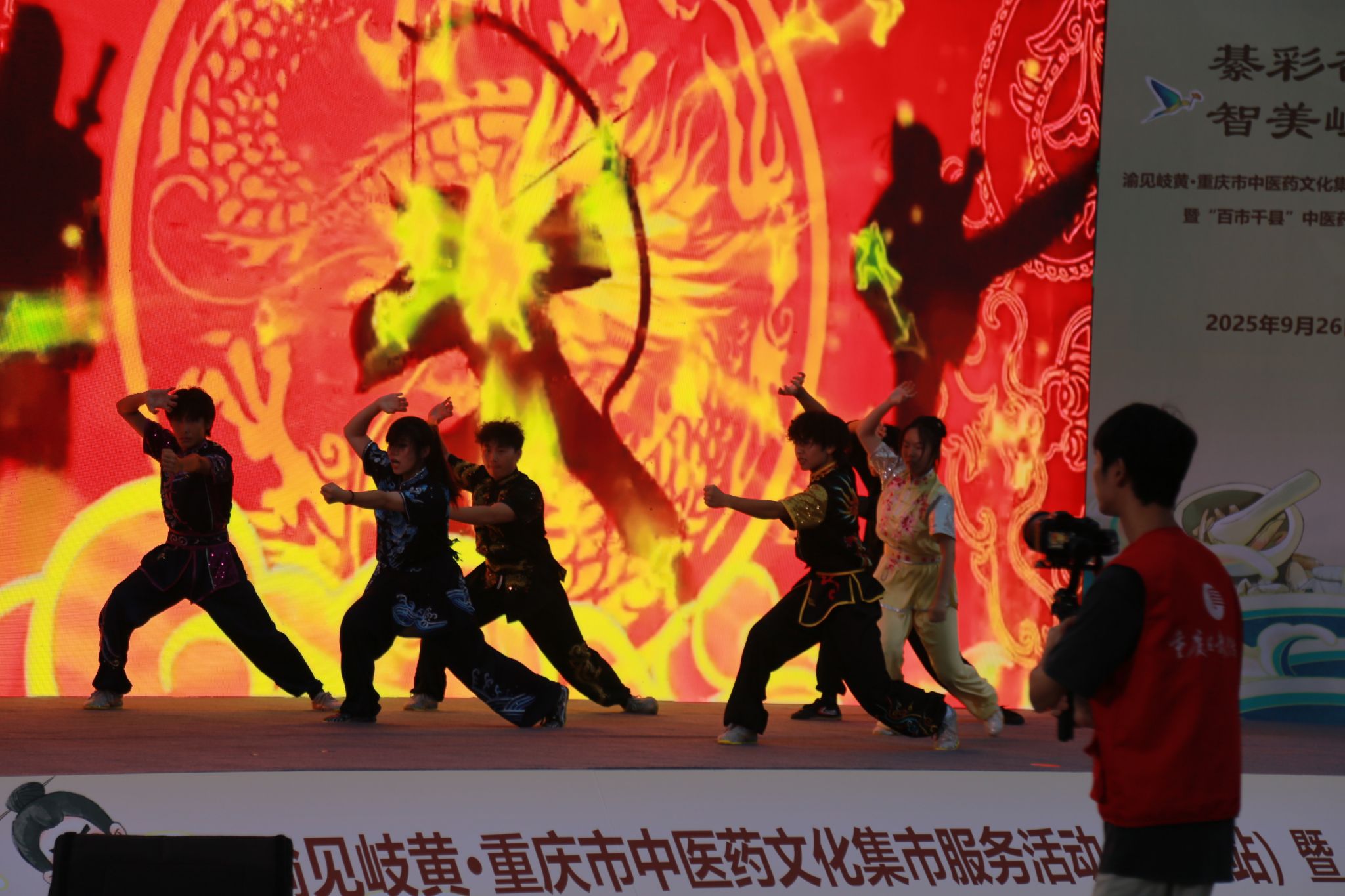开幕式上,校武术队还应邀表演了节目《破阵·龙吟》。表演动作刚劲有力、气势恢宏,巧妙融合传统武术与中医药文化中“精气神”的内涵,赢得观众阵阵掌声,为活动营造出浓郁的文化氛围。