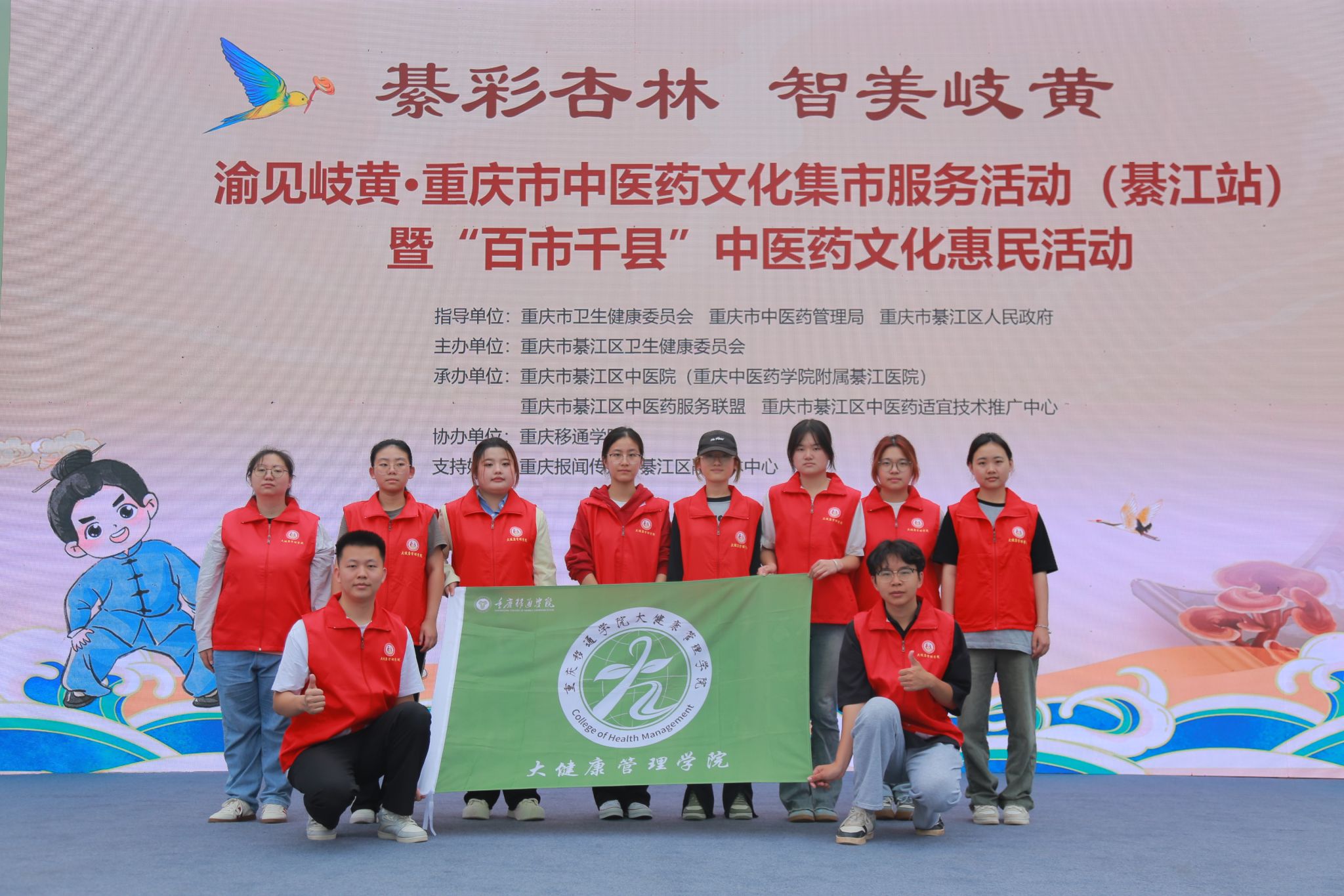 2025年9月26日,“綦彩杏林 智美岐黄——渝见岐黄”重庆市中医药文化集市服务(綦江站)暨“百市千县”中医药文化惠民活动在綦江区营盘山广场隆重开幕。重庆移通学院大健康管理学院积极响应,组织多名学生志愿者投身服务,为活动注入青春力量,助力中医药文化深入群众。