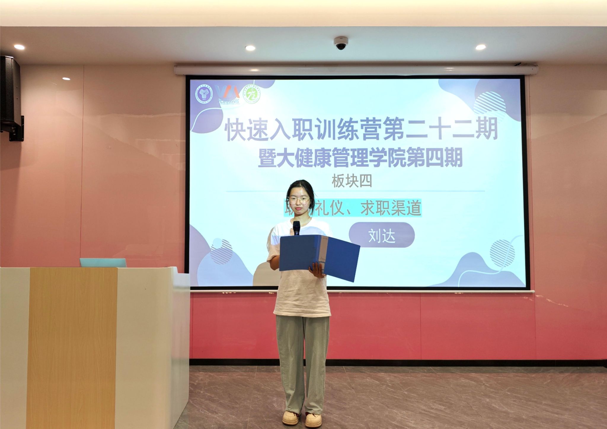 本期"快速入职训练营"以职场礼仪为基石、求职渠道为桥梁,全方位赋能学员职业转型。大健康管理学院始终秉持育人初心,为学生的就业之路扫除障碍、规避弯路,精准指明前行方向,助力健管学子在职业赛道上稳健前行、行稳致远。未来,学院将持续发力,构建更加开放、包容、多元的职业成长生态,为职业教育的高质量发展源源不断地注入新动能!