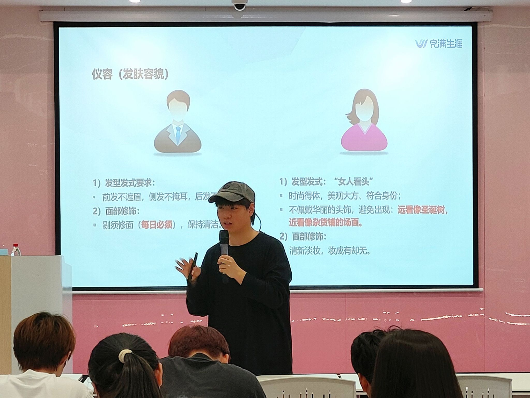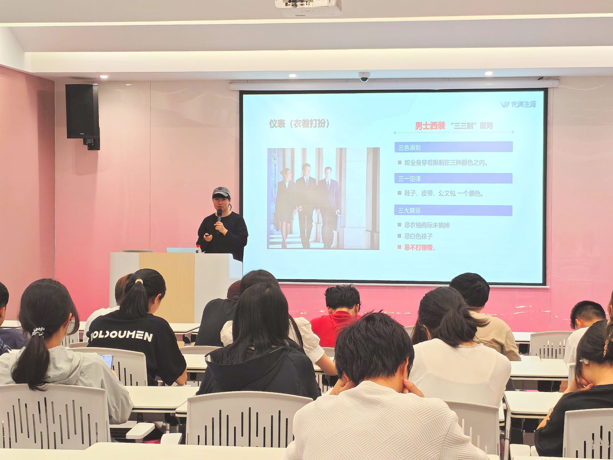 刘达老师聚焦职场礼仪的核心要素,从着装规范、发肤容貌到沟通礼仪,通过情景演练与案例解析,引导学员领悟细节的真谛。课程不仅传授“外在仪态”的标准化要求,更强调“内在素养”的长期积淀,帮助学员在未来的职业场景中展现从容自信,奠定职场发展的第一块基石。
