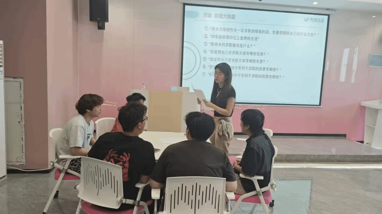 朱老师运用多元创新的教学形式,构建起沉浸式的自我探索场景,引导学生从多个维度展开思考,逐步勾勒出自身的优势轮廓,为精准求职奠定坚实基础。