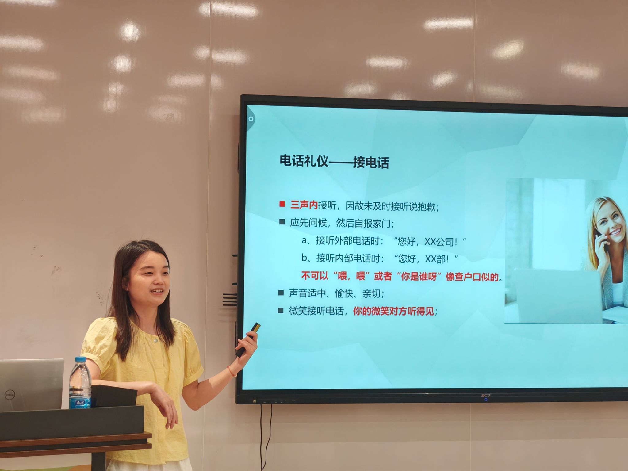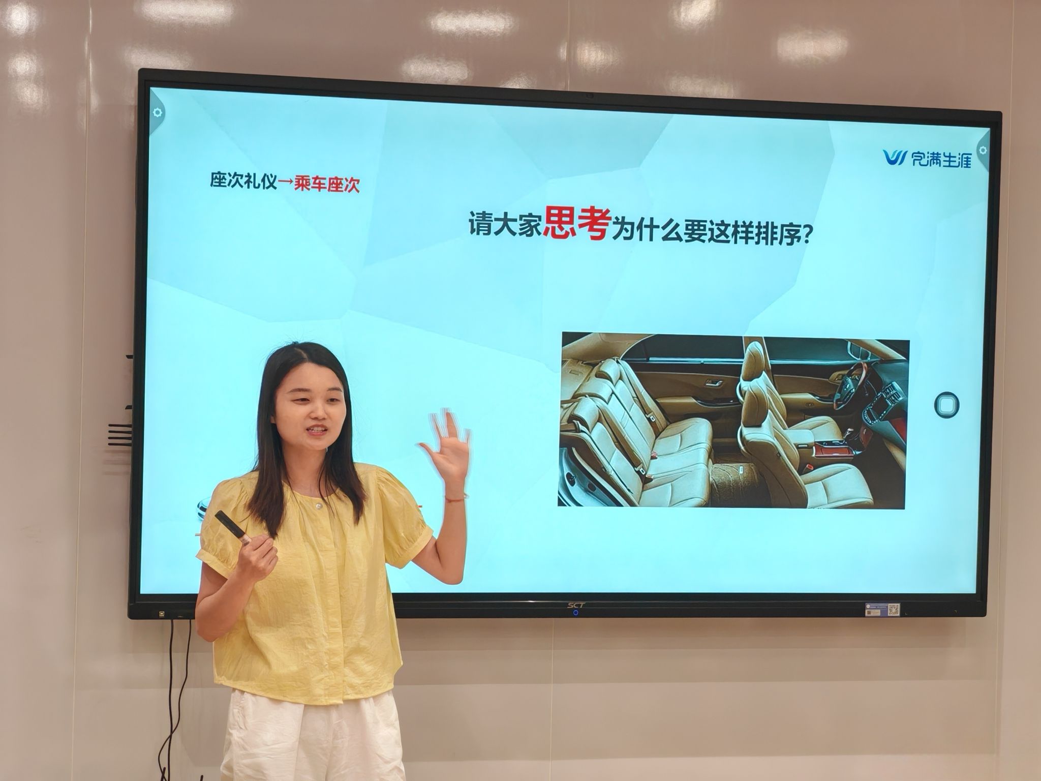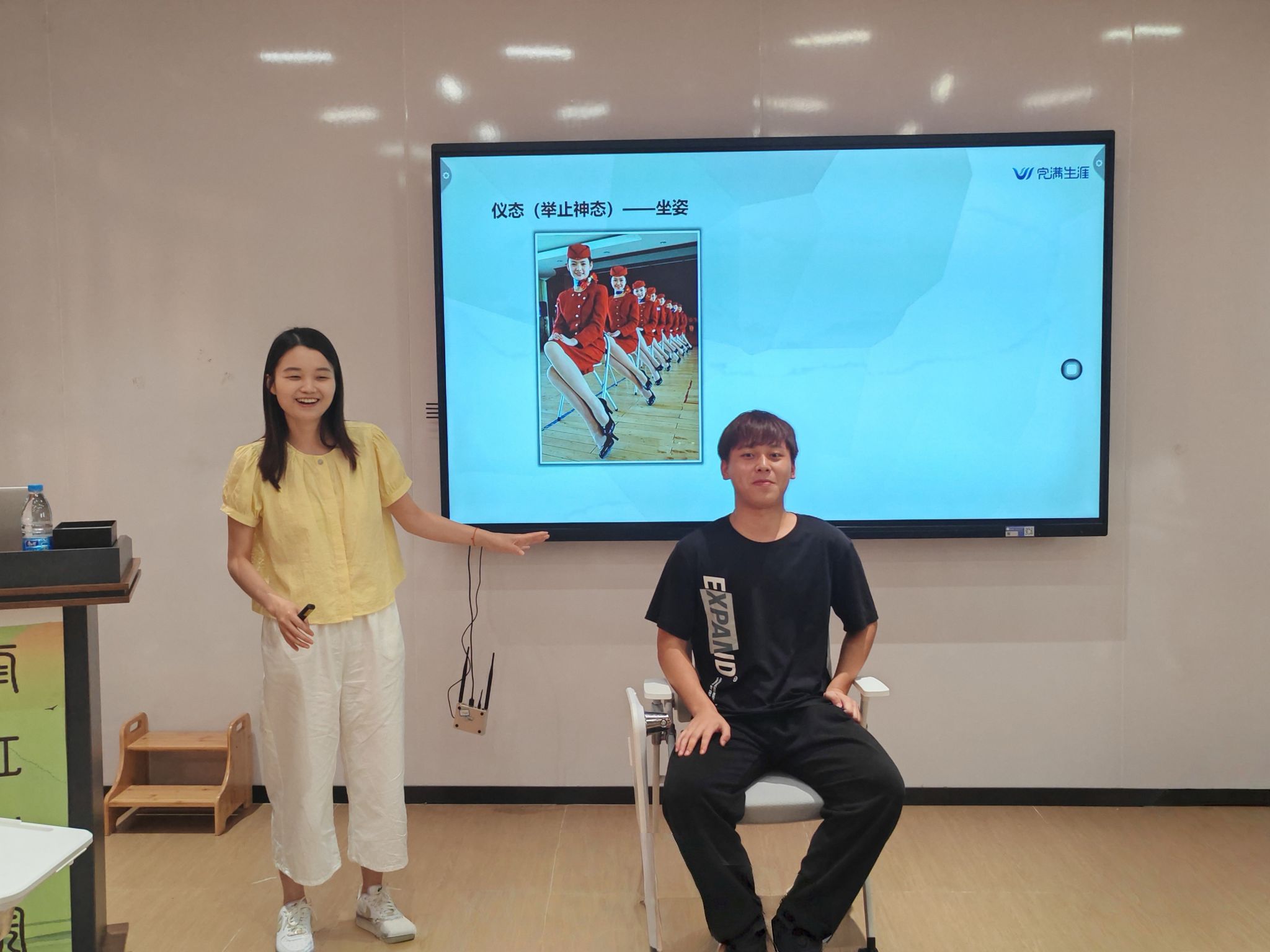李佳老师围绕职场形象管理与场景礼仪规范,深入讲解了“发型三不原则”“西装三三法则”等核心要点。通过“电梯偶遇面试官”“餐宴主位排序”等生动场景模拟,把抽象的礼仪知识转化为可操作的行动指南,像握手力度控制、名片双手递接等细节,都让学生们清晰明了,助力他们告别“学生气”,塑造专业且得体的职业化第一印象。