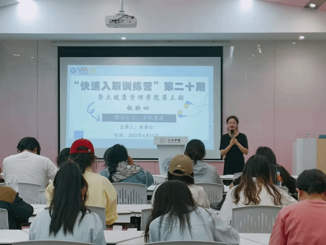 向春红老师围绕“职场礼仪与求职渠道”主题,为学员补全求职最后一环。从着装规范、线上沟通礼仪到行业人脉拓展,向老师以细节为抓手,全面解析职场软实力。她特别提醒学员:“礼仪不是形式主义,而是尊重与专业的体现。”此外,老师还分享了内推渠道、行业峰会、实习转正等高效求职路径,并推荐了多个垂直领域招聘平台,极大的填补了学员对职场隐性规则的认知空白,助力其从“学生思维”向“职业思维”转型,让同学们认识到:原来求职不仅是投简历,更是个人品牌的长期经营。