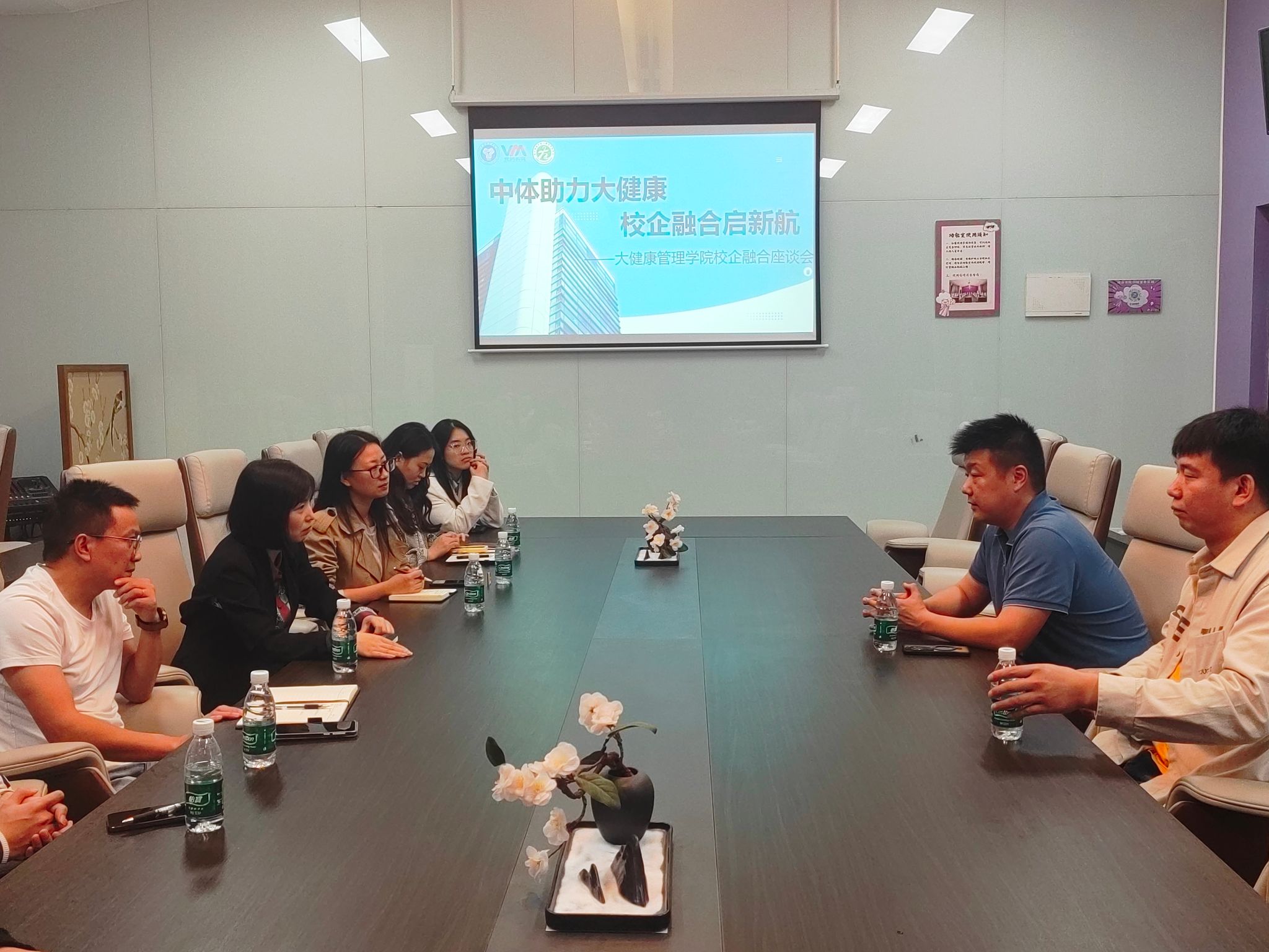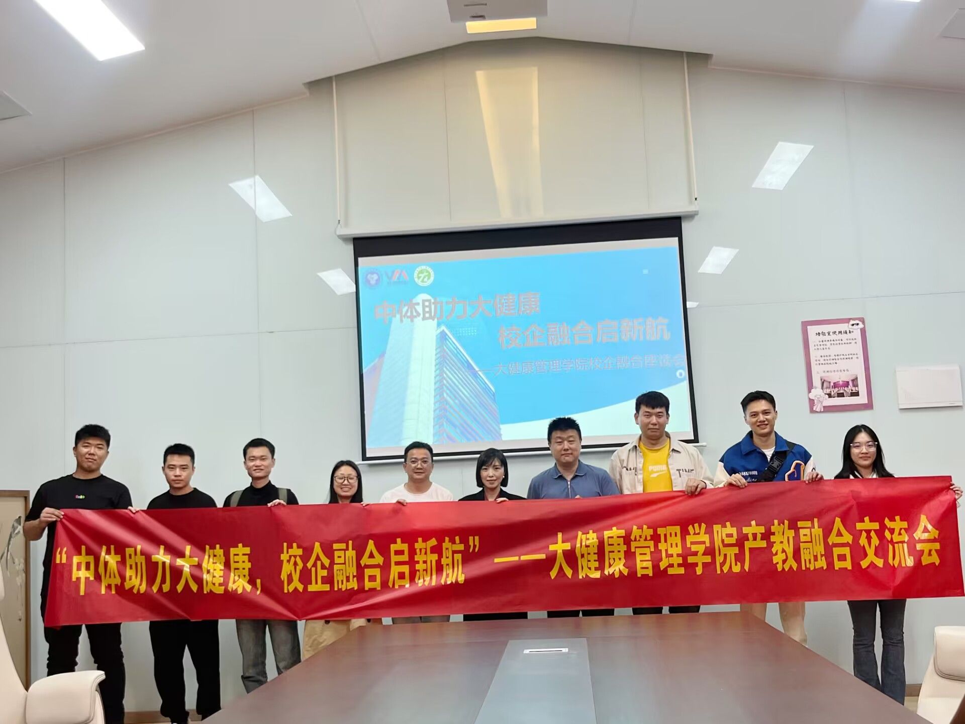 为了使大健康管理学院的资源力量更加雄厚,让同学们能够拥有更好的教育资源和学习环境,同时深刻贯彻大健康管理学院校企合作、产教融合的教学理念。大健康管理学院于2024年10月14日11:30在观云书院小雪会议室准时开展了“中体助力大健康·校企融合启新航”——大健康管理学院产教融合交流会。