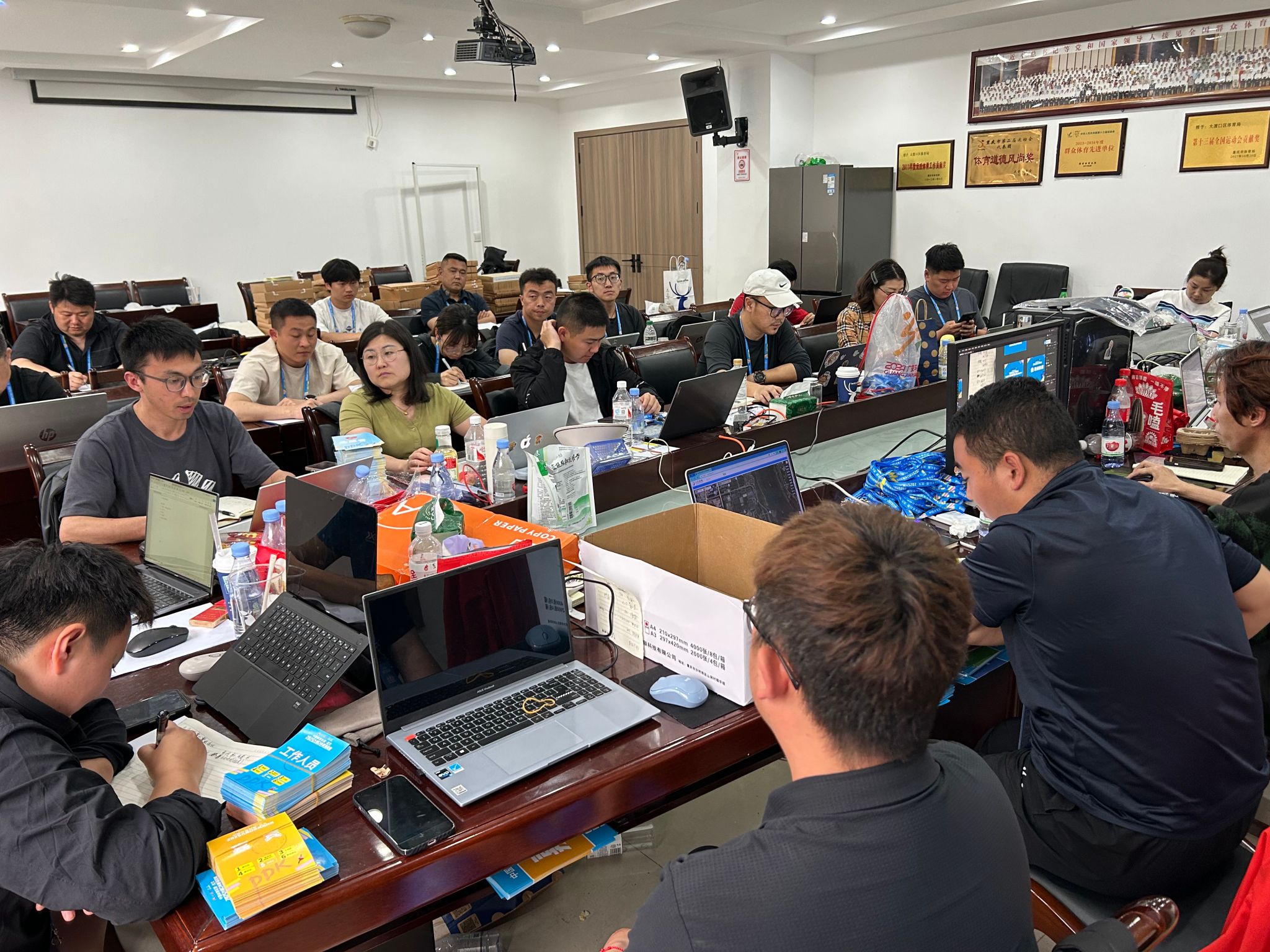 实习中期,健管学子深度融入赛事核心筹备环节,先后对接区卫健、公安及交通管理等职能部门,协助制作物资调配表、人员分工清单等标准化文档,实现跨部门信息高效互通。面对赛前突发暴雨预警,健管学子连夜参与防潮应急工作,重新规划完赛物资发放区,保障完赛装备安全,其严谨细致的工作作风获企业方高度赞扬。