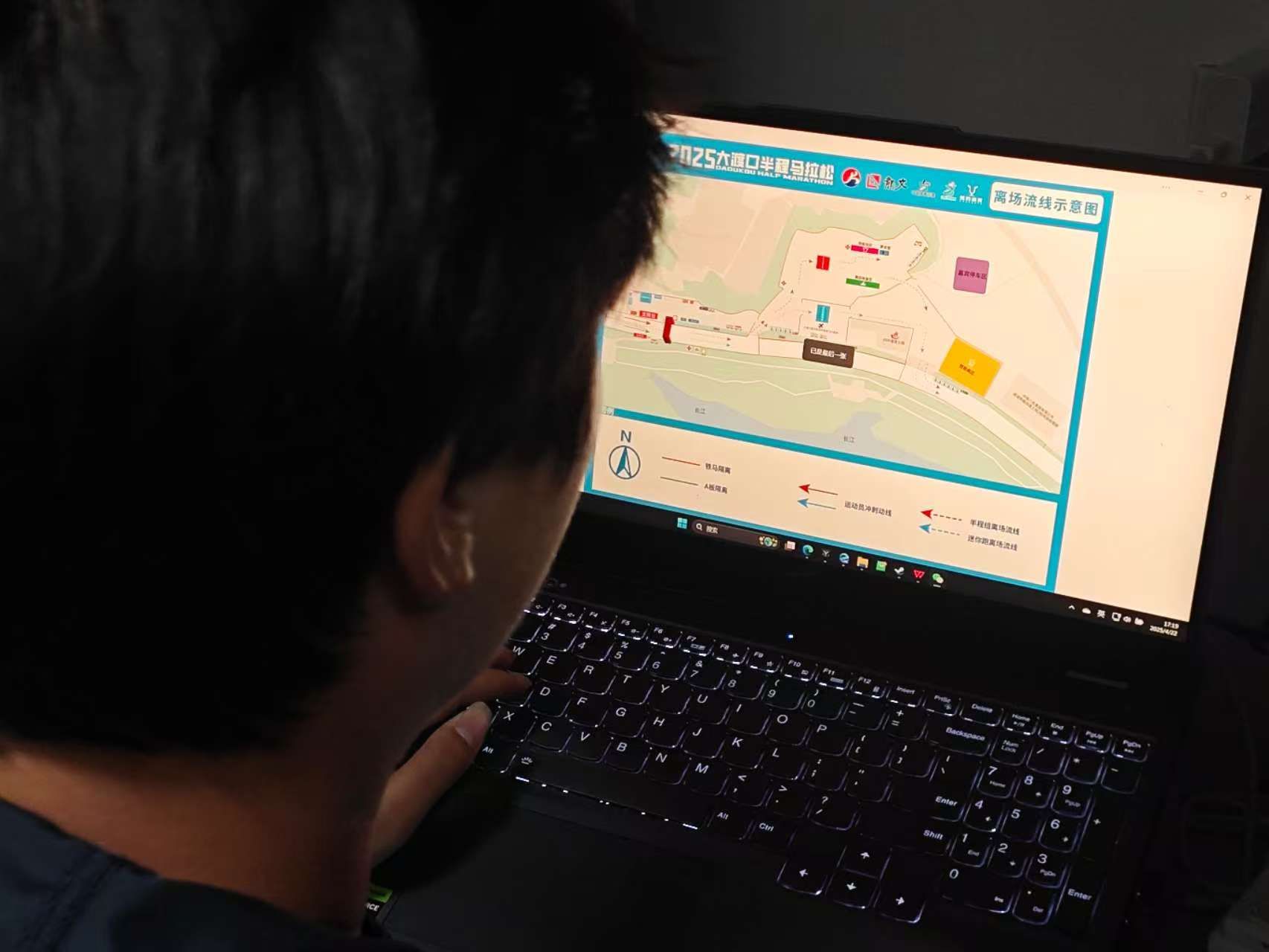 在专业导师带领下,健管学子从赛事场地图纸研读入手,通过三次实地踏勘,精准标注功能区坐标、系统掌握赛事空间布局逻辑,再结合体育经济与管理专业知识,对赛道周边人流疏散通道提出优化建议,为赛事安全高效运行提供支撑。