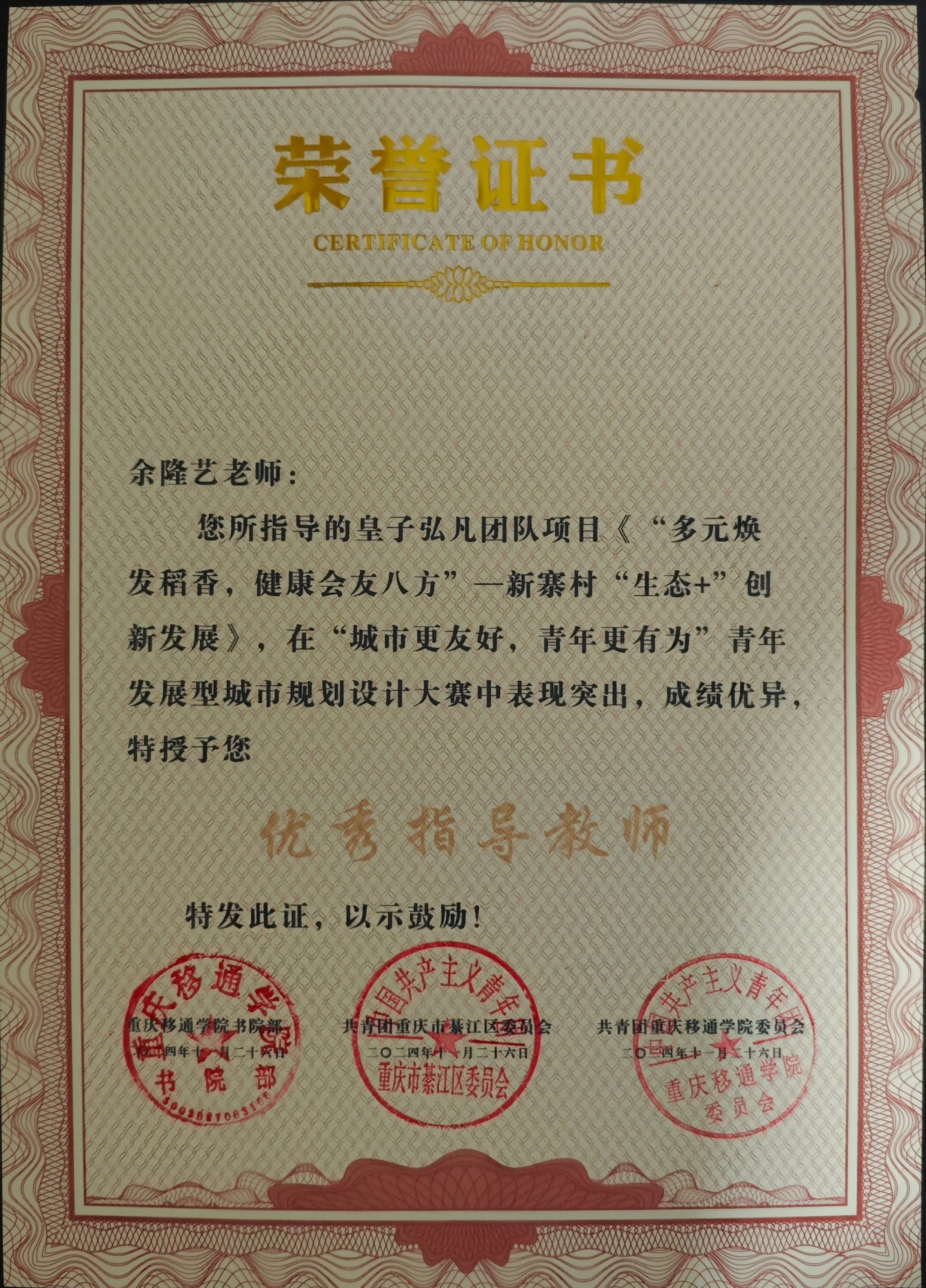 “城市更友好,青年更有为”青年发展型城市规划设计大赛 优秀指导教师