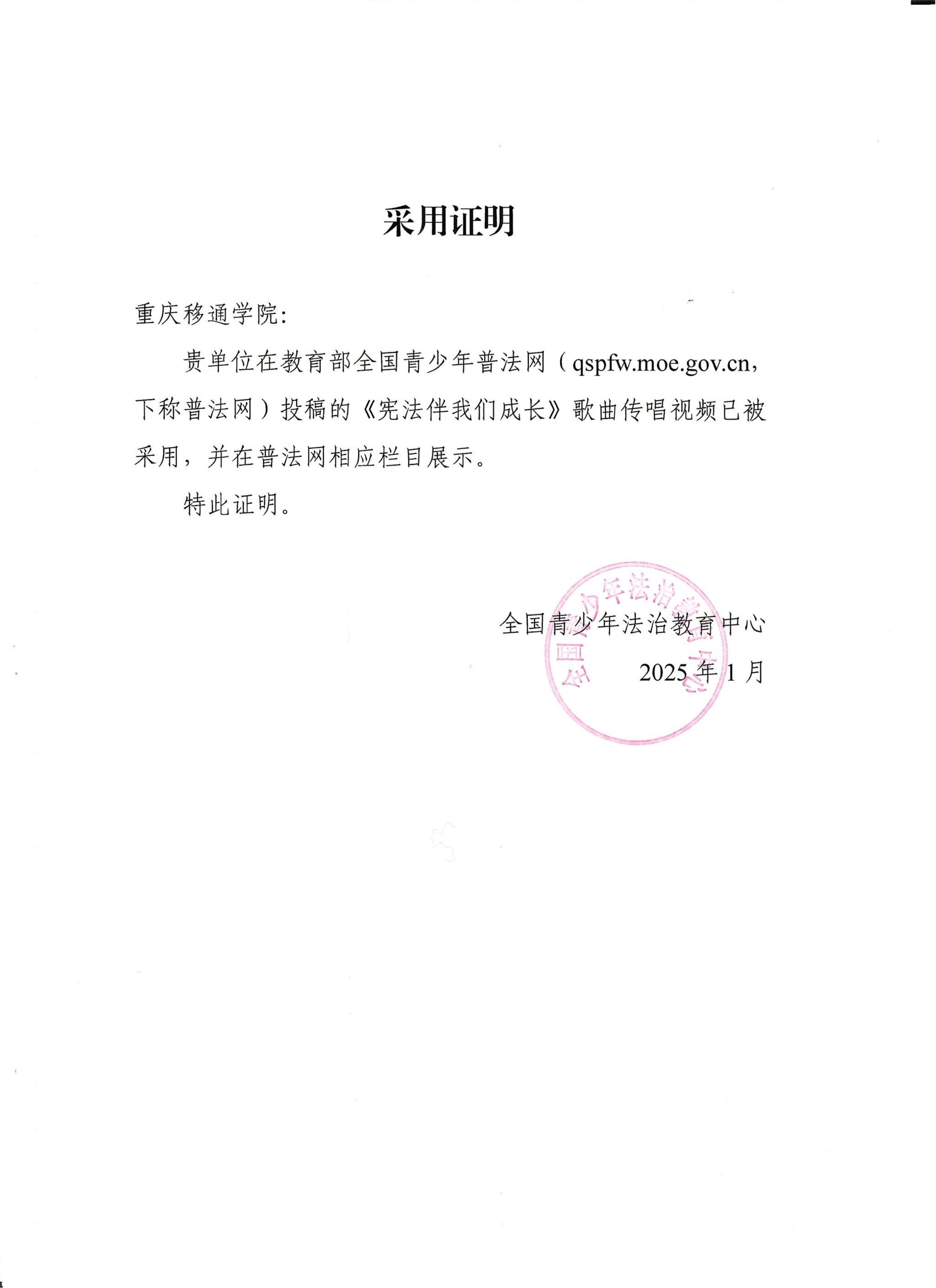 大健康管理学院《宪法伴我们成长》MV被普法网采用