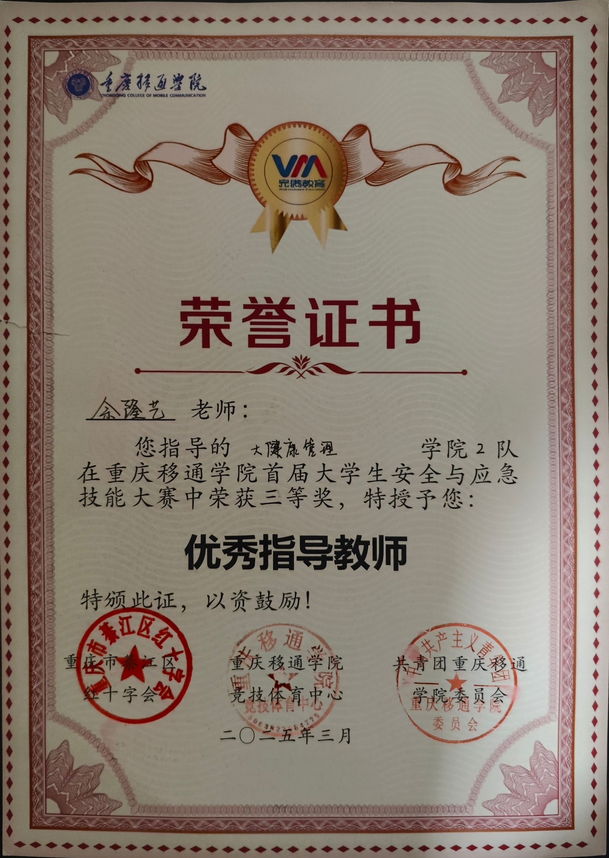 重庆移通学院首届大学生安全与应急技能大赛 优秀指导老师