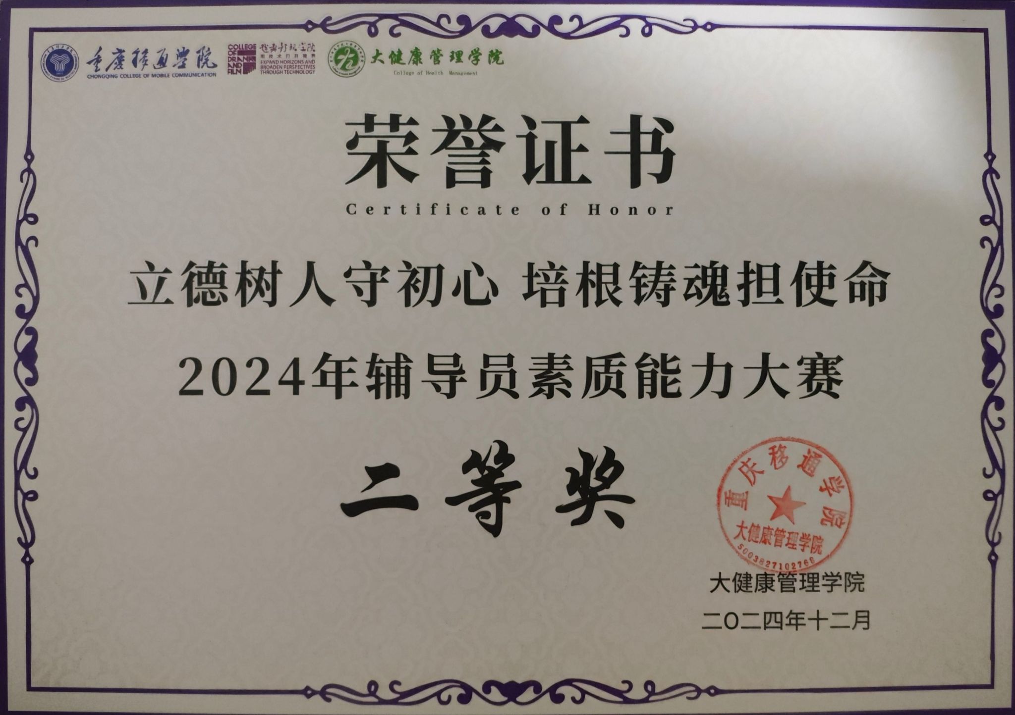 “立德树人守初心 培根铸魂担使命”2024年辅导员素质能力大赛 二等奖