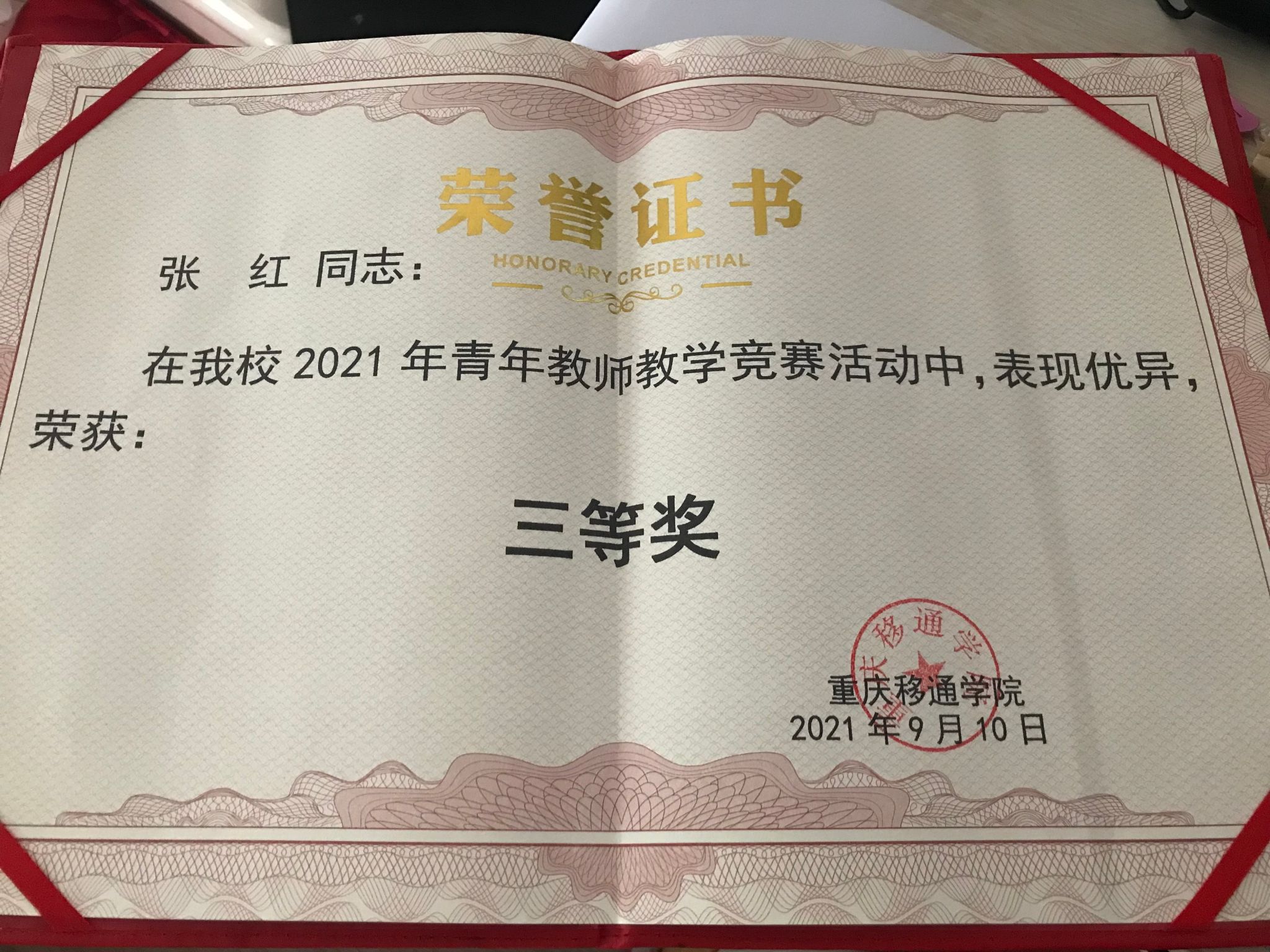 2021.9荣获校级青年教师教学竞赛“三等奖”