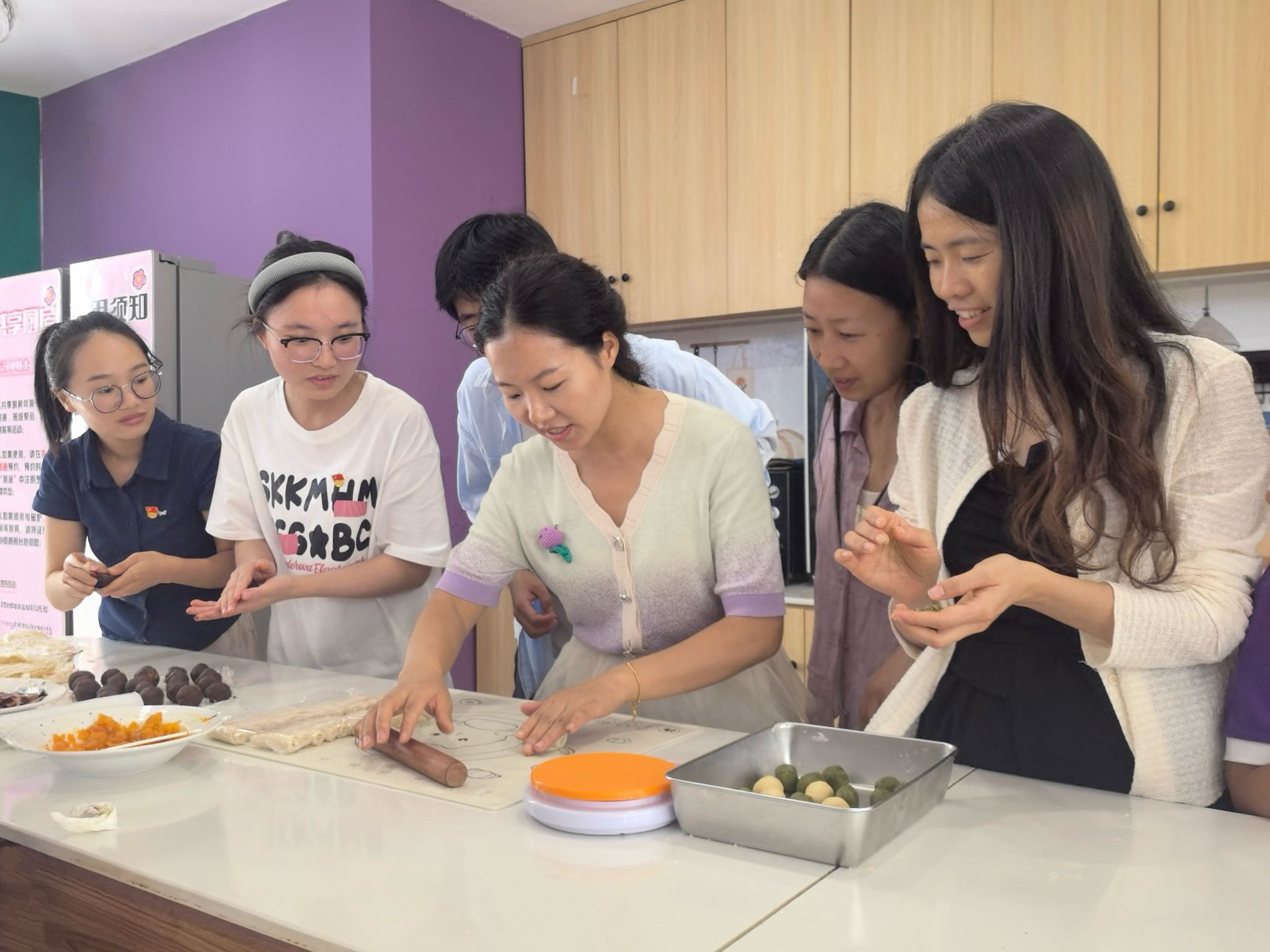 随后进入轻松愉快的“双节同庆”环节。“灯谜映初心”竞猜活动巧妙融合了中秋民俗、国庆知识与党建理论,现场抢答踊跃,气氛热烈。在“巧手做月饼”实践环节,党总支组织委员张红演示了月饼制作流程,并亲手为大家制作了香甜美味的月饼。随后,党员们分组协作,亲手制作冰皮月饼,在其乐融融的氛围中感受传统文化魅力,增进了彼此的情感交流。